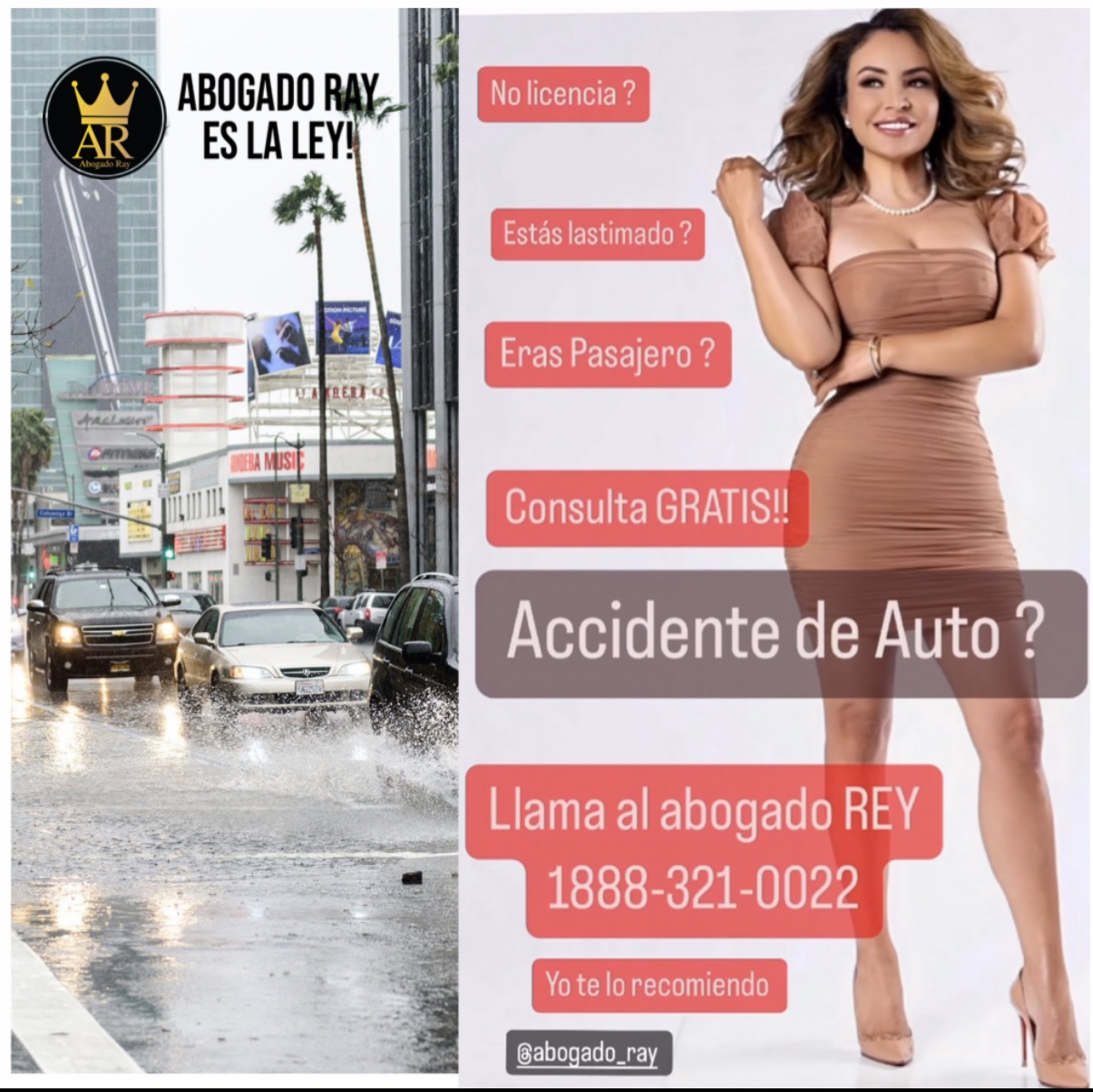 Hello, today I thank God and lawyer Ray for helping me in my car accident case that I had recently. The lawyer solved all my problems that the accident caused, of course I would gladly recommend him.