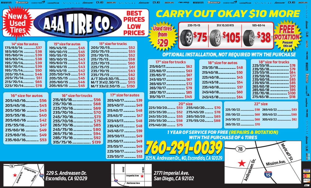 A4A Tire Co. is a highly regarded tire shop known for its excellent customer service and quality workmanship. The owner, Ruben, is praised for his fairness, honesty, and efficiency, often installing and balancing tires in less than half an hour. Customers consistently report saving up to 50% on tires compared to larger chains, with the shop offering competitive prices on popular brands like Falken Wildpeaks. Reviewers highlight the shop's fast and careful service, as well as Ruben's commitment to getting the job done right. With a loyal customer base that has been visiting for over a decade, A4A Tire Co. is a trusted and reliable choice for all tire-related needs.