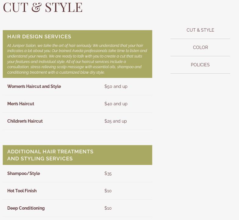 Juniper Salon is located in Eureka, CA. Our salon is situated in wonderful Henderson Center in a beautifully restored craftsman house. We are known as one of the top Aveda salons in our local area. We are an Aveda concept salon offering only the best environmentally friendly and sustainably sourced products to our guests. Our salon employs service providers that are experienced in their craft and are always striving to acquire further education to grow in their careers. We invite you to come and experience the relaxing atmosphere and quality service that Juniper has to offer to each and every guest who walks through the door.