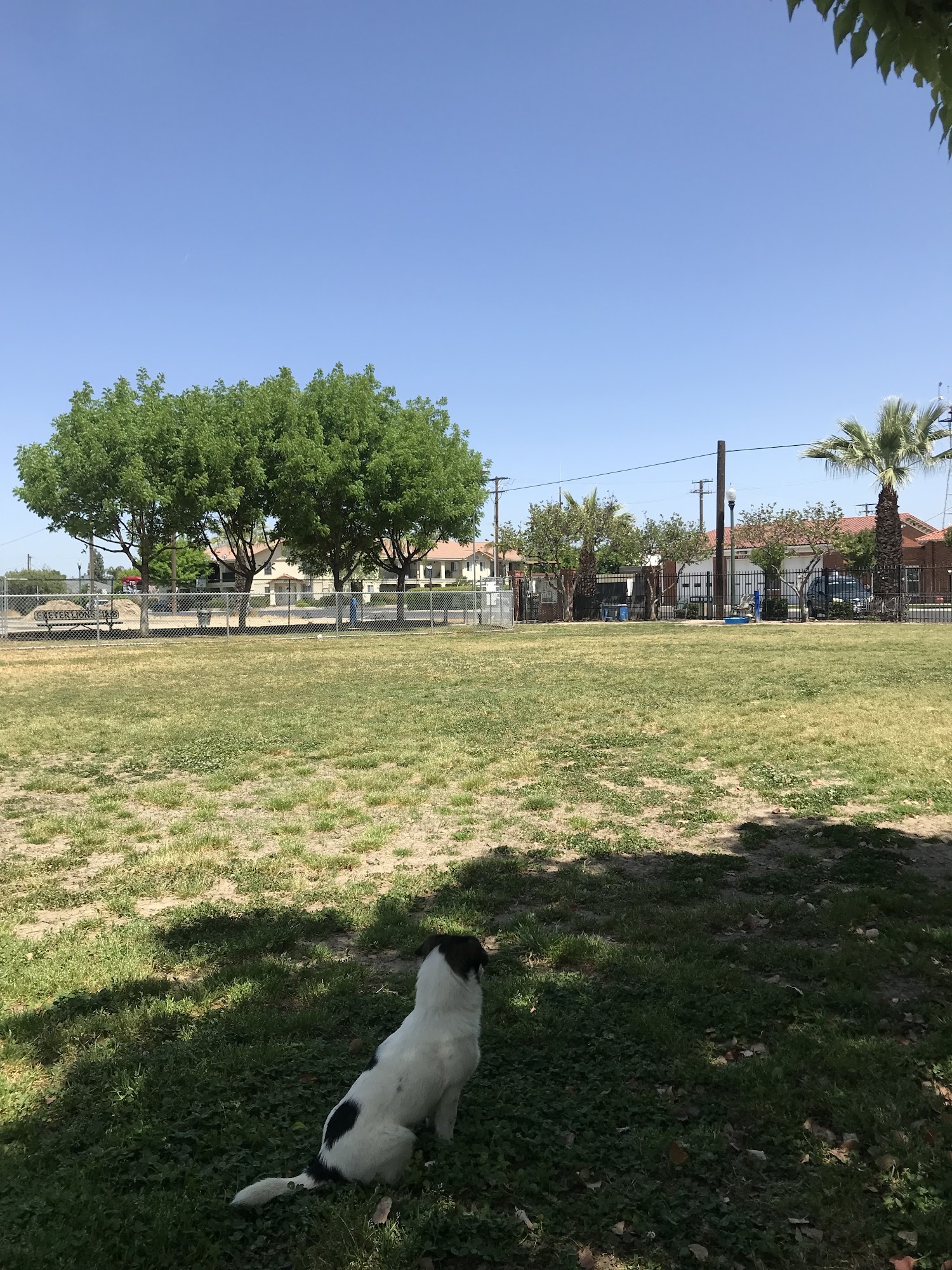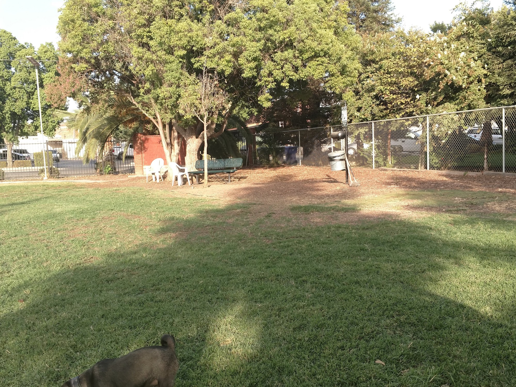 The large dog pary of the park is very spacious. They have tables and chairs to lounge in while your fur babies play. There is water for the dogs to drink. It is never really crowded.