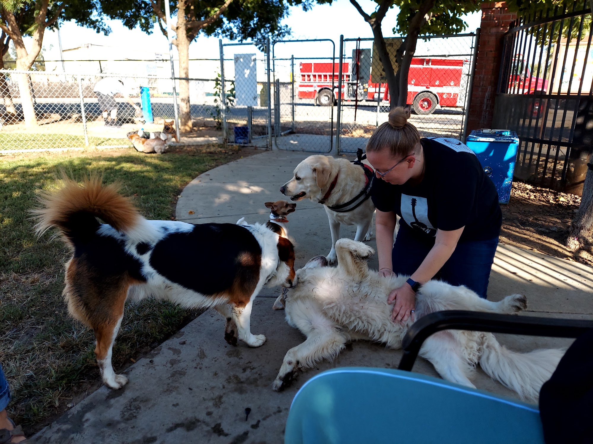Bosco our fug and our rescue dog Rosco had such fun running and playing with the other big dogs. I met Leon Red Bone a big love lab! he was a sweetie. this is a great dog park!