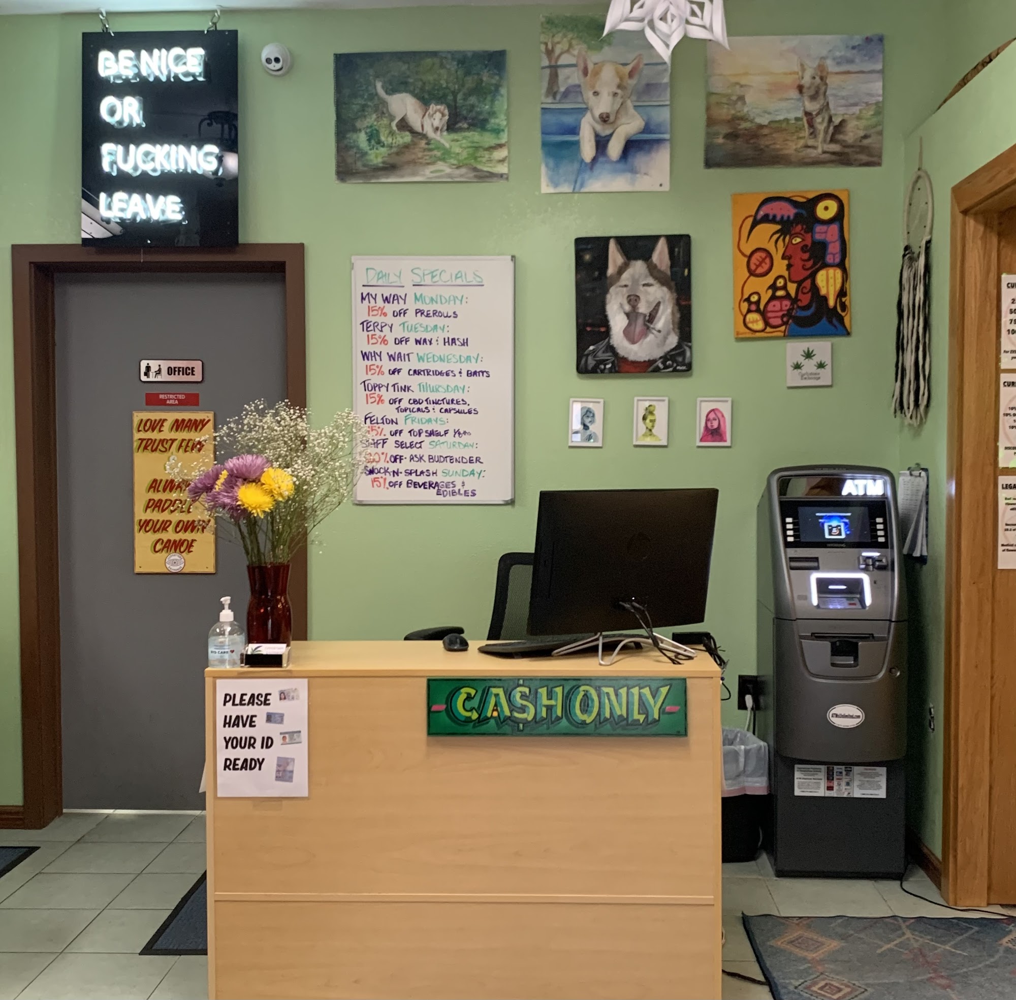 budtender spent like an actual 15-20 minutes helping me, was very patient waiting for the printer to work for my medical card, 10/10 would go again, good prices and awesome atmosphere