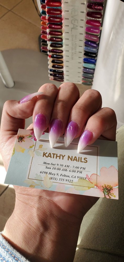 Whenever my fingers and/or toes need some TLC, I go to Kathy Nails in Felton. They provide excellent, professional service in a warm, relaxing atmosphere. I always go home with just what I needed.