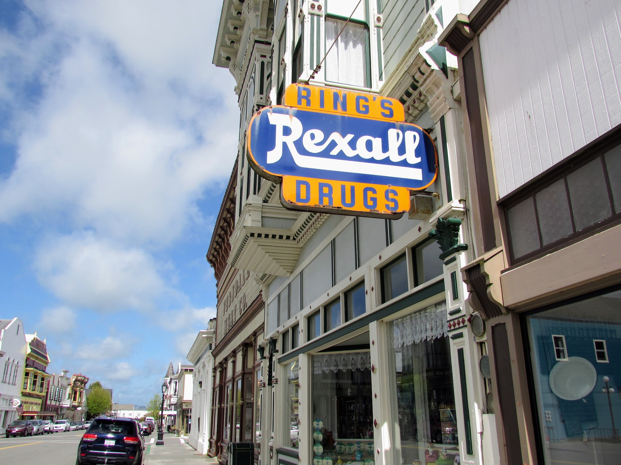 Opened in 1895, Rings Pharmacy is the longest continuously operating pharmacy in California. Inside the original ornate redwood shelving still remains. As you appreciate the woodwork you will also see the pharmacy bottle collection. The store is not just an interesting place to visit, but also a great place to shop. It is still a pharmacy and drug store, featuring a Kodak Photo kiosk.