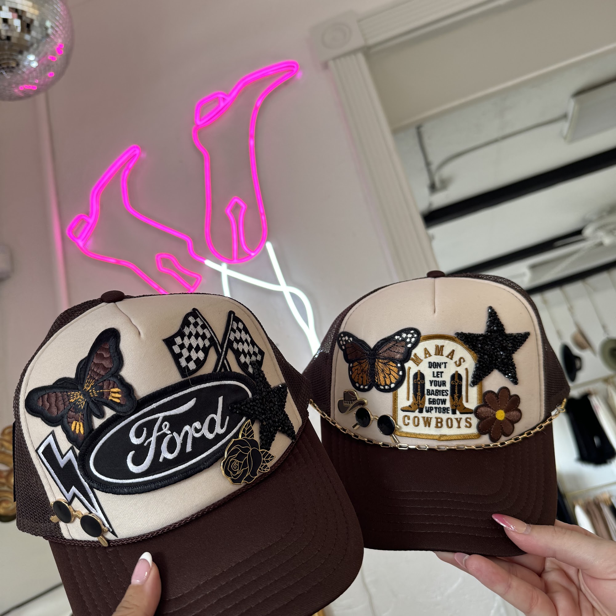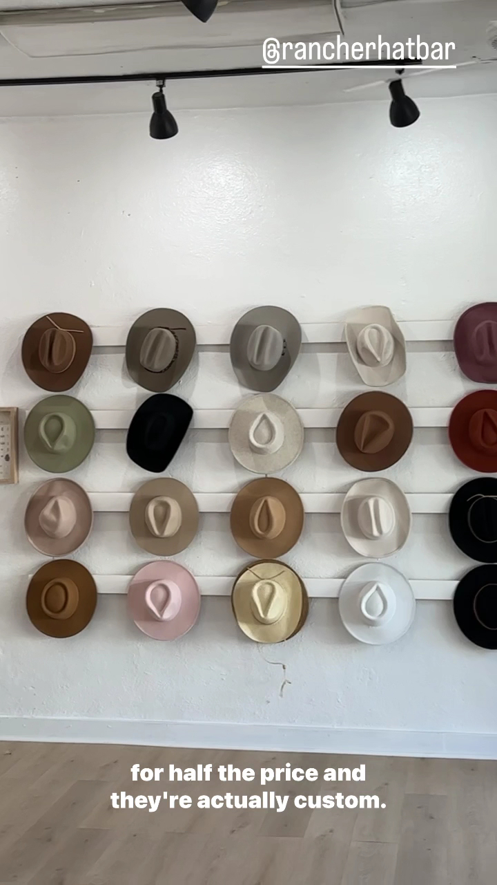 Rancher Hat Bar is America's #1 Hat Bar and the ultimate destination for creating a custom, one-of-a-kind cowboy, rancher, or trucker hat. It is not just shopping, but an experience. Customers can step up to the Custom Hat Bar to design their perfect look with endless options, unique trims, bold personal touches, and branding. The business also features a Trucker Bar and a Charm Bar for crafting necklaces. The team is known for being awesome, incredible, fun, helpful, professional, flexible, sincere, and talented. They provide a creative, memorable, and impressive experience where every single hat crafted is personalized and beautifully detailed. Guests feel special and genuinely connect with the process, often raving about it. The shop itself is a darling gem and a fun way to be creative, perfect for a girls' trip or a lazy Saturday visit. Many customers become obsessed with their hats and plan to return, calling it the highlight of their visit. Rancher Hat Bar also travels to events, bringing all necessary styles and accessories to set up a full custom bar, making any occasion unforgettable.