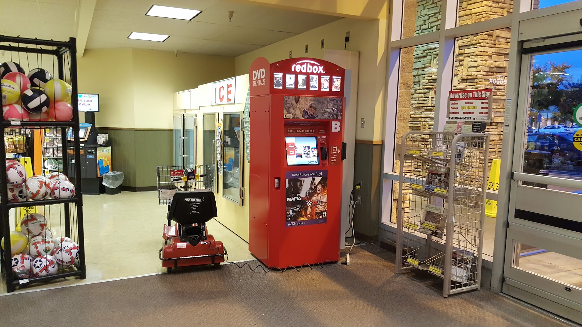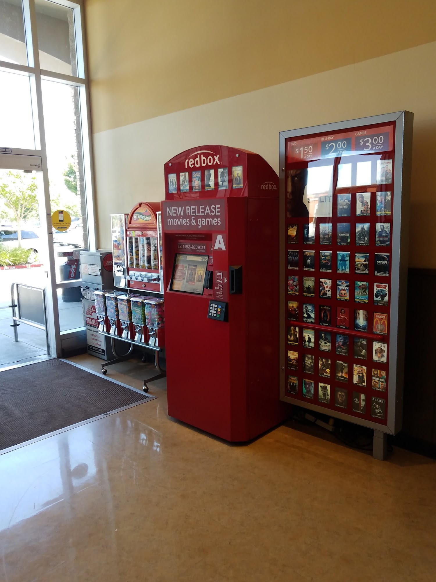 This is in the Safeway, NOT actually in the middle of the parking lot like maps says it is. This Safeway is open 24/7 so you can access this Redbox any time.