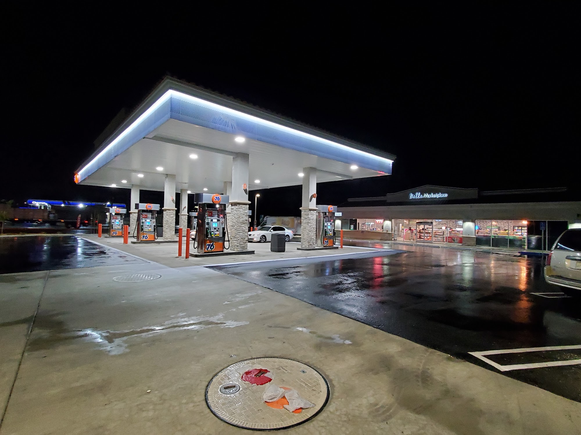 Just passed through going to Fontana to visit friends. Purchased gas and a few snacks. Nicely lit up for night time. I was really grateful for that