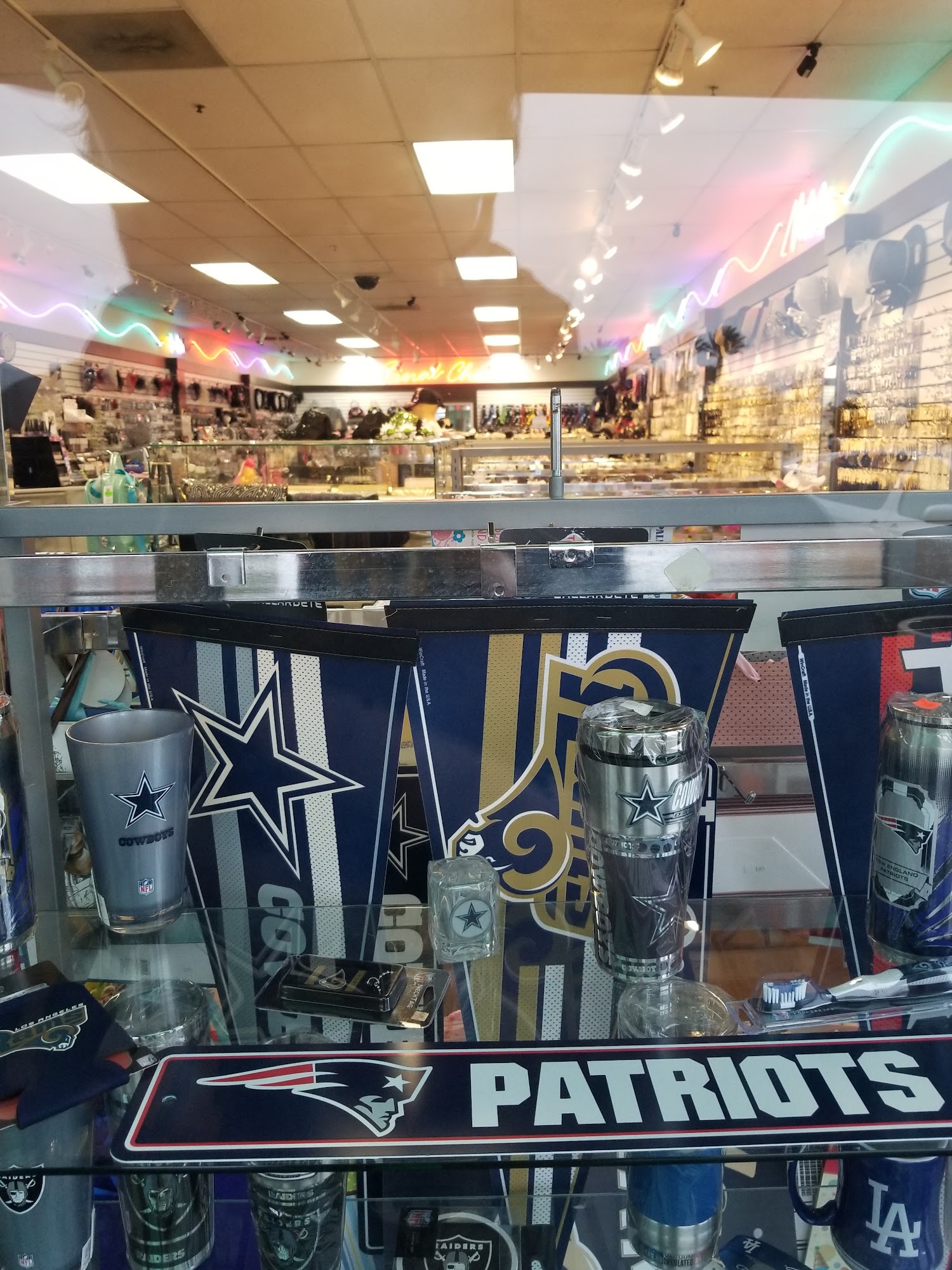 Kind of like "Things Remembered," but with a twist. They have a lot of sports swag like cups, masks, beanies, hats, bandanas, keychains, etc with mixed NFL, MLB, & NBA teams.
