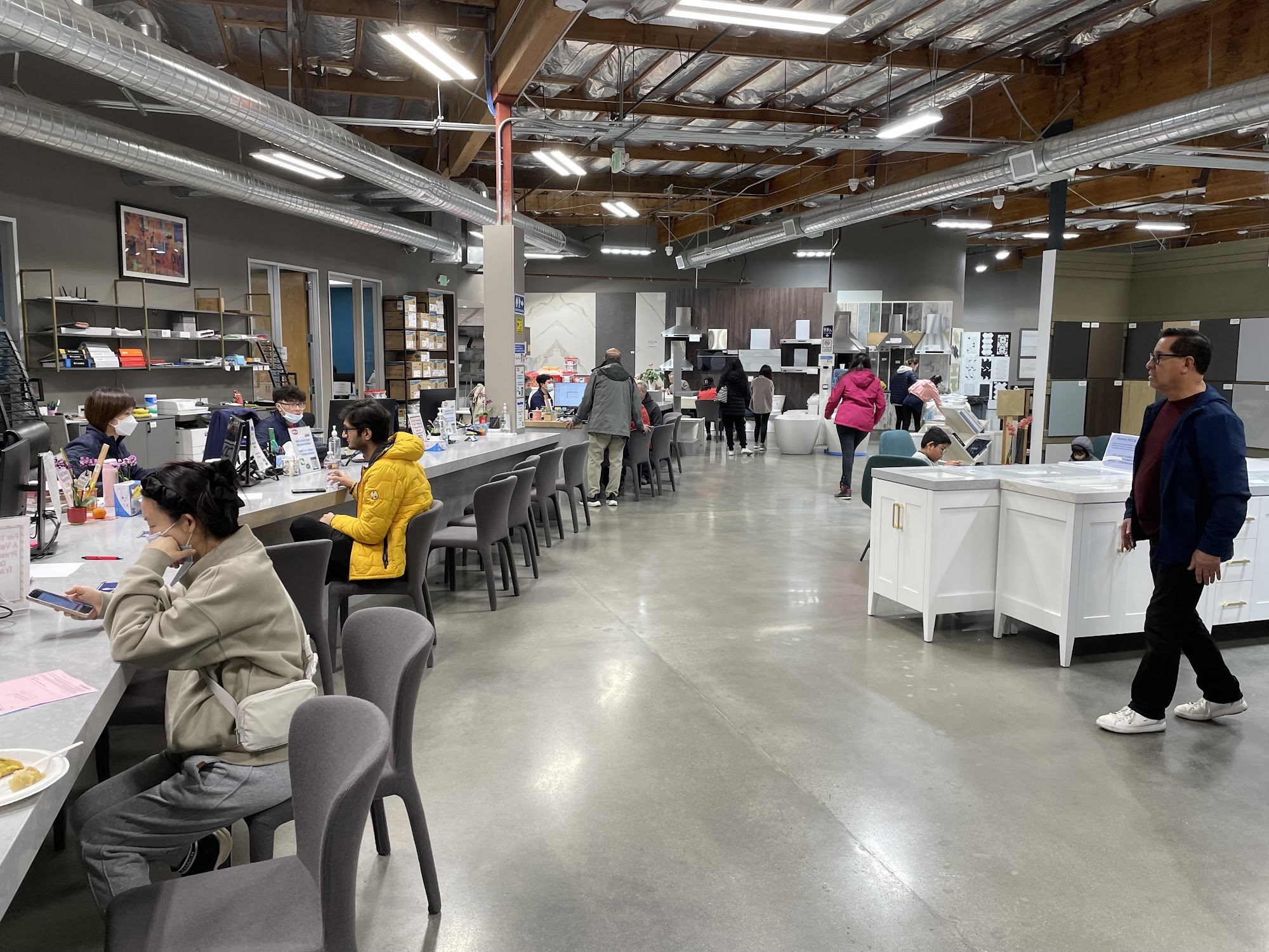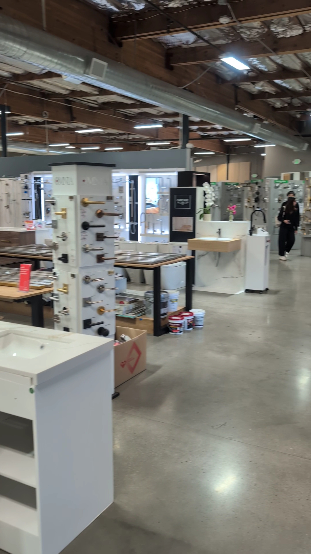 Big display of bathroom construction panels and various utility items. Cabinets are adequate. Staff is courteous and offers advice only when asked. Easy access.