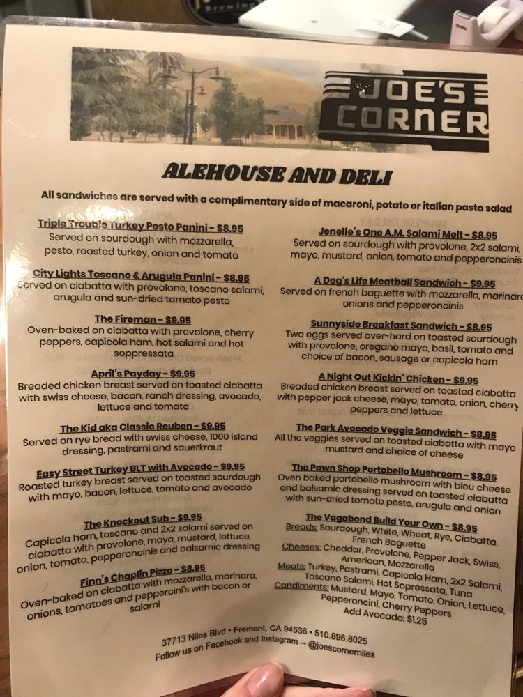 Joe's Corner is a historic restaurant and craft beer pub located in downtown Niles, Fremont. With a history spanning over a century, it offers a cozy, small-town vibe with a welcoming atmosphere. The restaurant is popular for its delicious sandwiches, pizzas, and an eclectic collection of local craft beers, making it a great spot for beer lovers. Visitors can enjoy their food and drinks inside or relax outside on the outdoor patio, which is perfect for people watching and soaking in the lively downtown views. The menu features hearty options like fish and chips, pizza, and sandwiches. The fish and chips are notably large and flavorful, though some find the menu limited and the fish to be frozen. The food generally receives good reviews for flavor and quality. The beer selection impresses many guests, with some wishing for a full bar in the future. Service at Joe's Corner is consistently friendly, hospitable, and attentive, with staff going out of their way to make guests feel comfortable. The venue is pet-friendly outside, allowing dogs to join diners, and offers free popcorn for guests. Parking is convenient, with a large lot across the street. Overall, Joe's Corner provides a warm, friendly environment with good food, great beer, and excellent service, making it a favorite spot for locals and visitors alike.