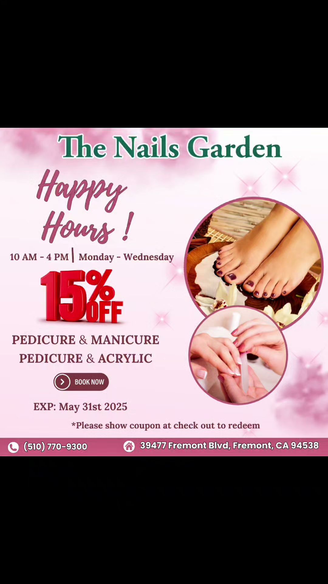 The Nails Garden is the premier destination for nail services in the heart of Fremont, CA 94538. Getting your nails done should be an indulgence and The Nails Garden understands this. Our goal is to pamper all the ladies with unique manicures and pedicures that will leave your nails looking elegant and makes you feel rejuvenated. From the minute you step in our salon to the minute you step out, you'll be provided with excellent service and comfort in a relaxing environment. We understand that Safety and Sanitation are key to your peace of mind. Our implements are medically sterilized and disinfected after each use. Buffers and files are used only once then discarded. All pedicure procedures are done with liner protection.
