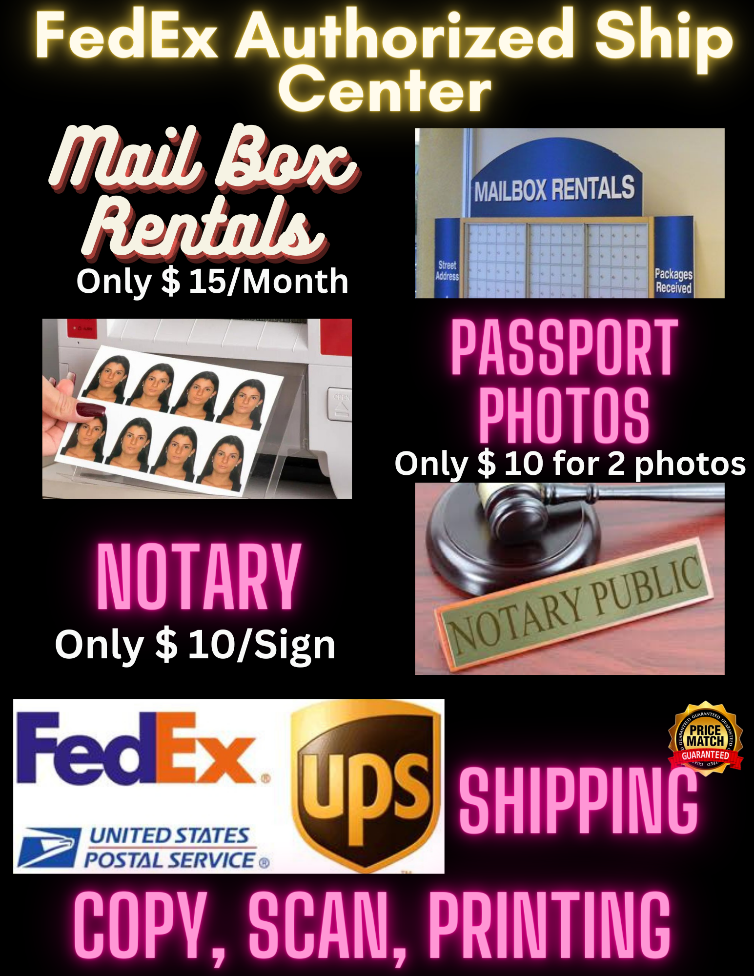 Established in 2020, Fremont's FedEx Authorized Ship Center simplifies domestic and international shipping with convenient access to FedEx, USPS, and UPS carrier services. Beyond mailing solutions, the center offers mailbox rentals for secure mail management, notary services for legal document authentication, passport photo services for travel needs, and scan and printing services for added convenience.