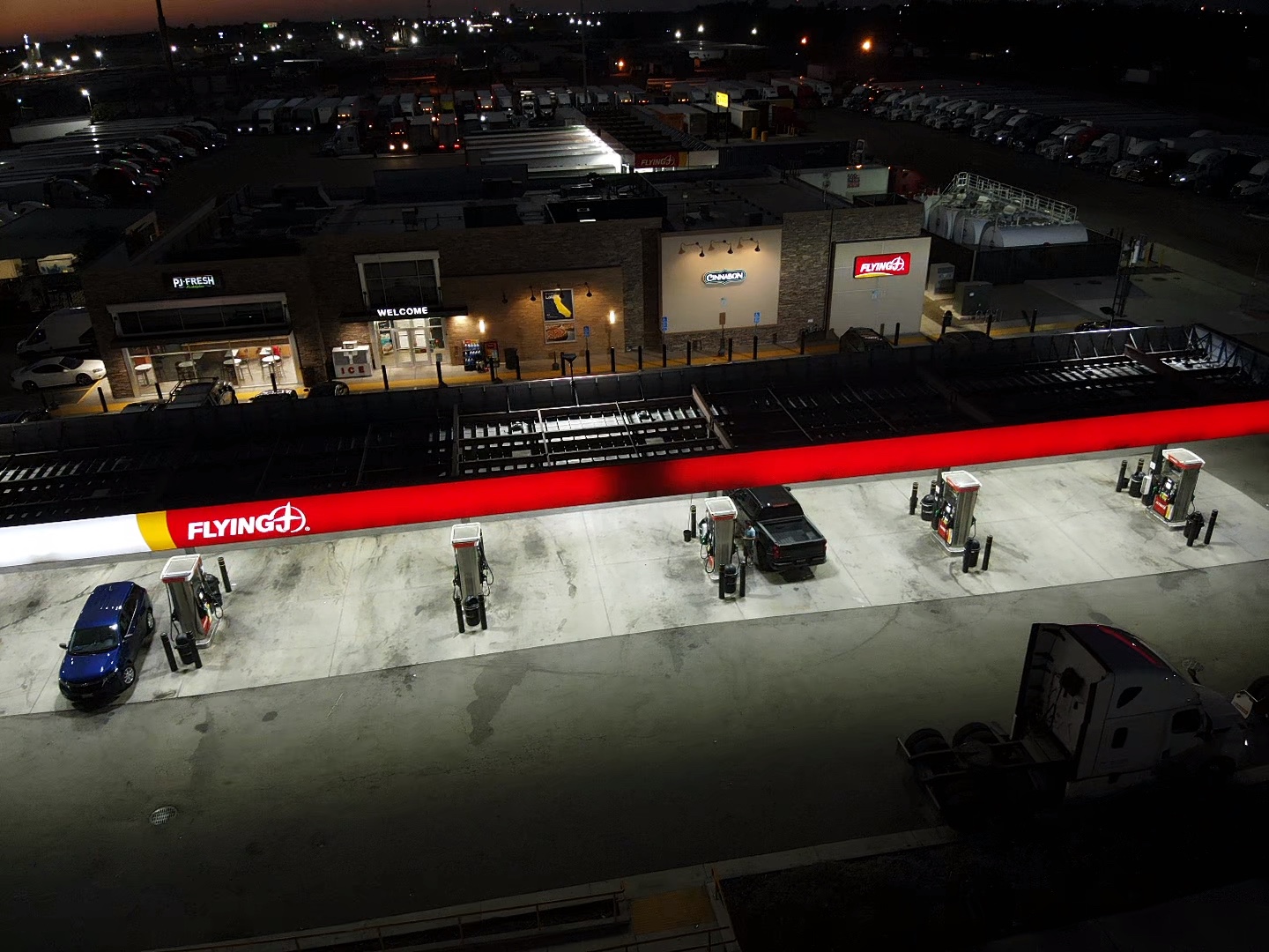 Flying J Travel Center in Lathrop, CA, offers a convenient stop for travelers, especially truck drivers. The location provides friendly service and a clean environment, with well-maintained restrooms and showers that are spacious and very clean. Staff members, including managers, are praised for their professionalism, friendliness, and welcoming attitude, making visitors feel comfortable and appreciated. The travel center features a wide selection of snacks, drinks, and the best coffee on the interstate, ideal for refreshment on the road. Fuel options include gas, diesel, and DEF, with high-speed pumps, and the site also supports EV charging stations. For travelers needing rest, overnight parking is available, though parking can be limited during busy times. The facility is appreciated for its relaxed atmosphere, helping travelers feel at ease, whether stopping for a quick snack or an overnight stay. The showers are notably spacious, almost like a motel room, providing a much-needed chance to refresh. Customers also value the convenience offered by the Pilot app, which provides exclusive deals and features such as mobile fueling, parking reservations, and trip planning. Overall, Flying J Travel Center is a reliable and friendly spot for fueling, resting, and relaxing on the road.