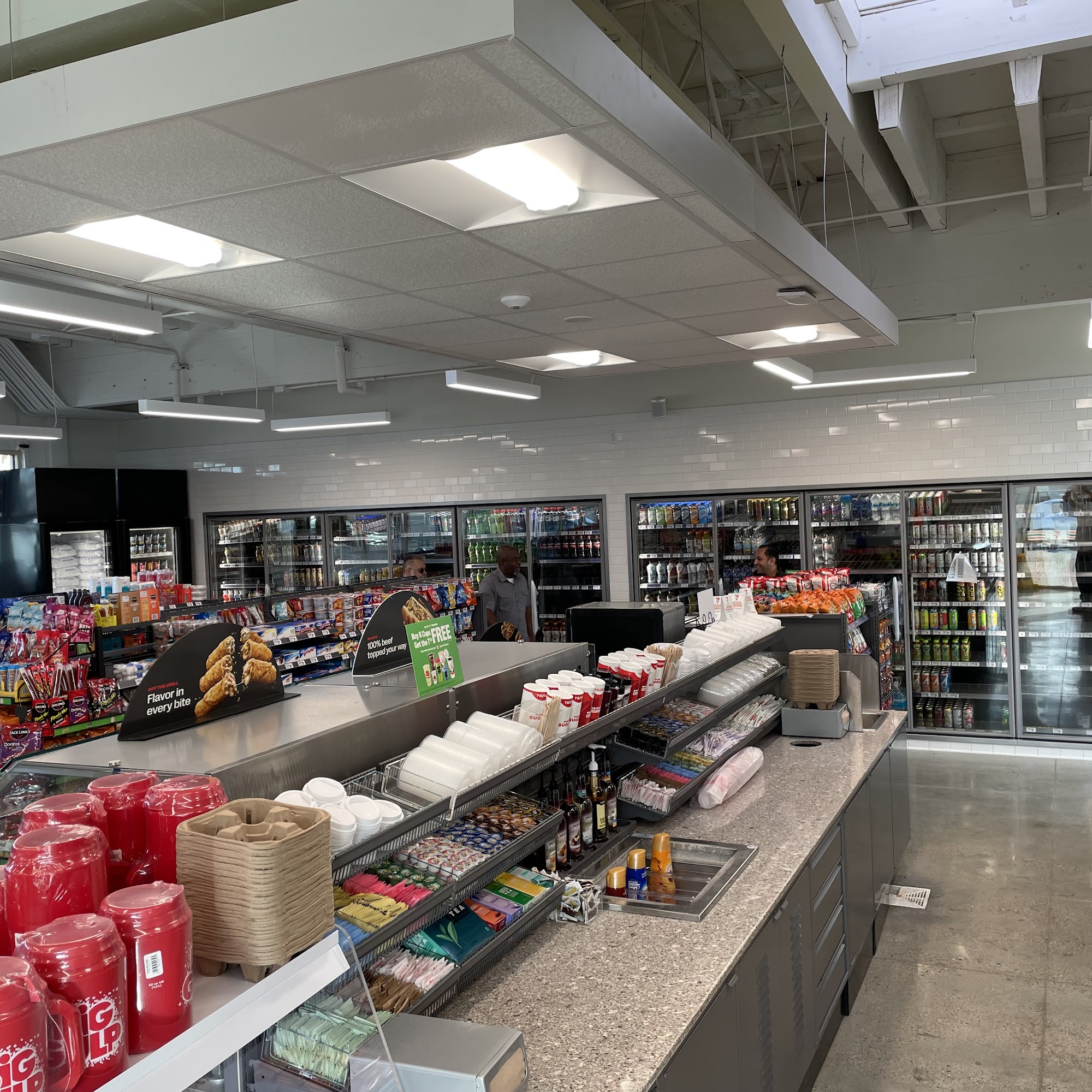 Larger store, cleaner, newer, gas pumps, hard to exit on cedar, but overall good store