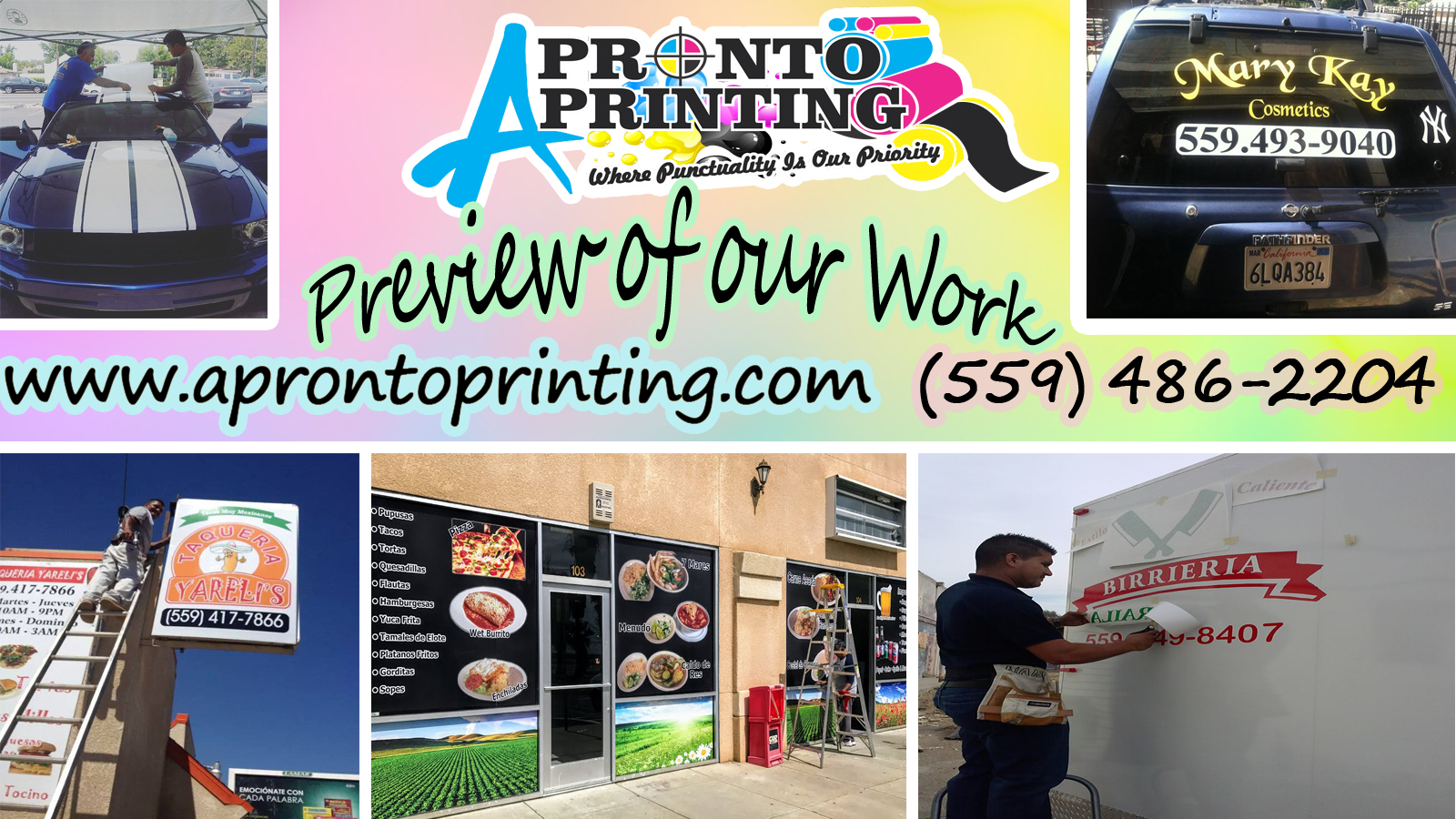 I am the owner of. El titins tacos located at 4621 n blackstone ave here in Fresno just got my logo on truck and honestly they do really good work I will be going back for shirts and hats also a menu I need for my taco truck I highly recommend them for your logos or anything you need .