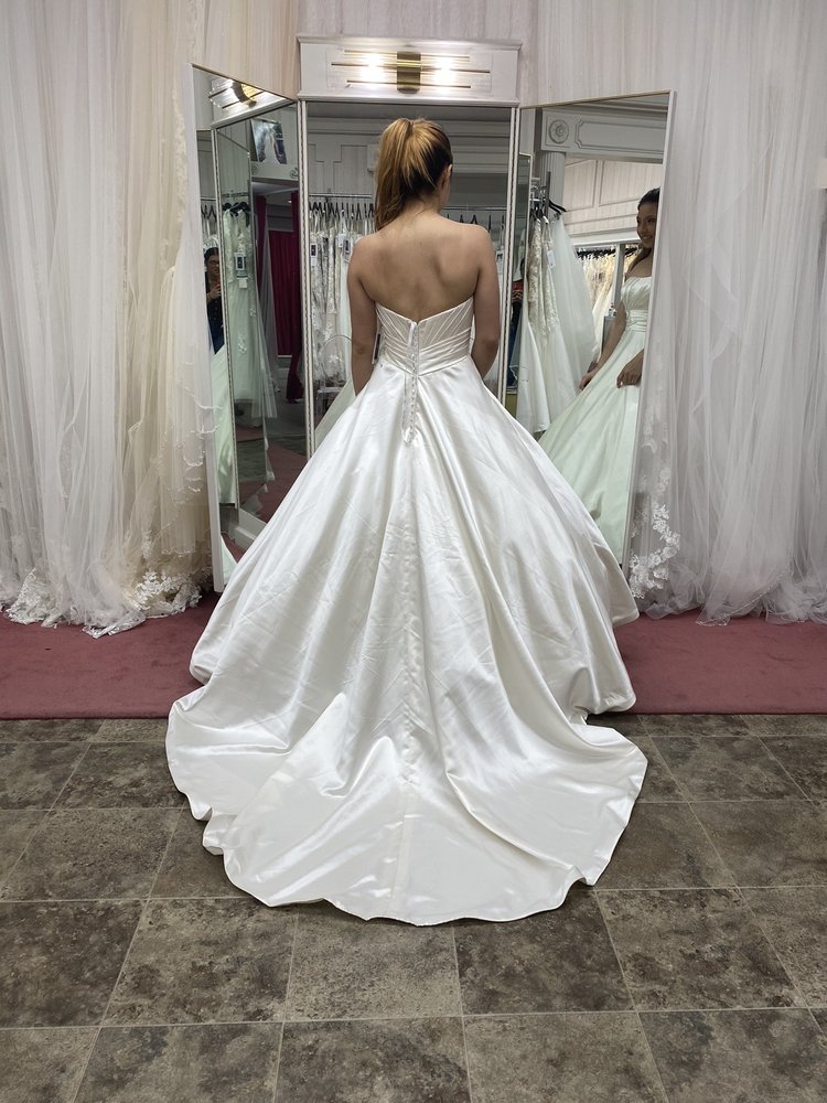 Elegant Bride Boutique offers a warm and welcoming environment for brides shopping for their wedding dress. Customers consistently praise the friendly and helpful staff, especially mentioning Tabitha, who is known for her patience, kindness, and ability to listen to each bride’s vision. Many reviews highlight how staff members take the time to understand individual styles and preferences, making sure each bride feels heard and cared for throughout the process. Even brides who walk in without appointments or with limited expectations find themselves comfortable and supported, often leaving with a dress they love. The boutique is appreciated for its personalized service, willingness to go the extra mile—such as taking dresses off mannequins—and for creating a positive experience that reduces stress and builds confidence. Brides also mention the variety of styles available, helping them find the perfect dress for their big day. Overall, Elegant Bride Boutique is celebrated as a place where brides can enjoy dress shopping, feel valued, and find their dream wedding dress in a friendly, stress-free setting.