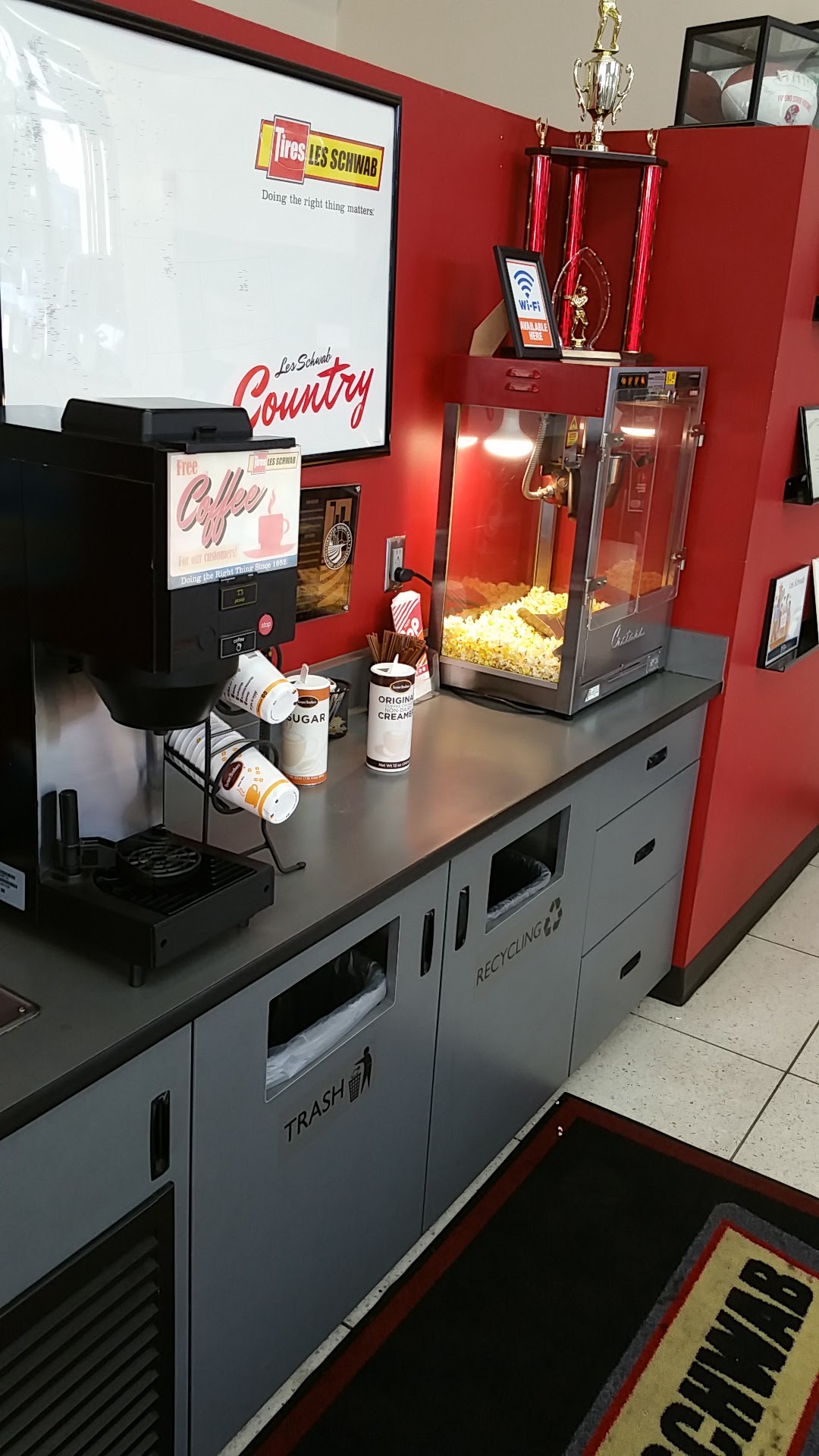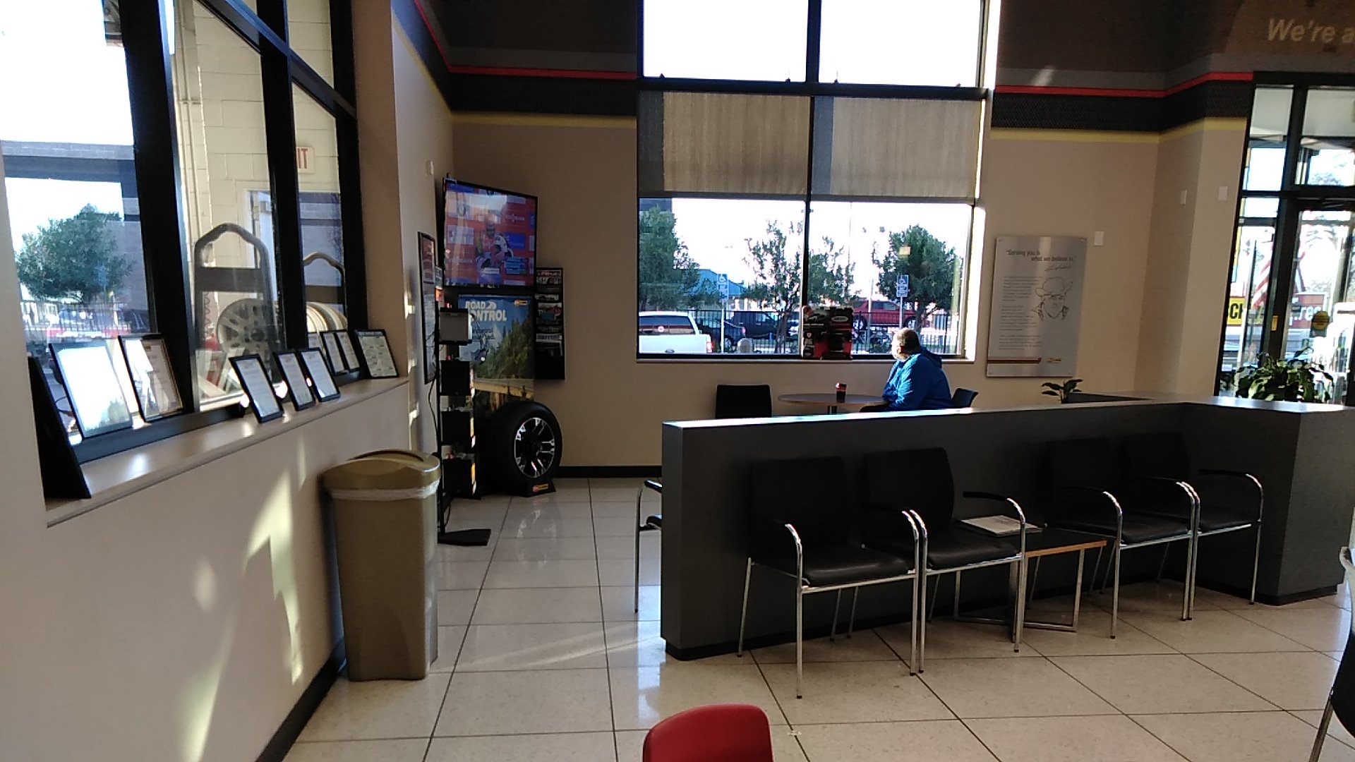Always checks my tires and gives me the service I need with a smile. Very quick and clean. They have popcorn while you wait.