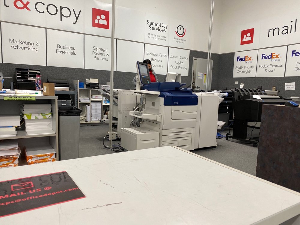 Office Depot is a one-stop destination for all your business and home office needs. The store offers a wide range of products, including paper, ink, furniture, technology, cleaning and breakroom supplies, as well as business services like custom printing, shipping, and tech support. The helpful and efficient staff at Office Depot are always ready to assist customers, whether it's for a large purchase, print services, or any other office-related task. Customers have praised the store's curbside pickup option, which allows them to conveniently pick up their online and app orders without leaving their car. With a great crew, courteous management, and a positive attitude, Office Depot is a reliable choice for all your office needs.