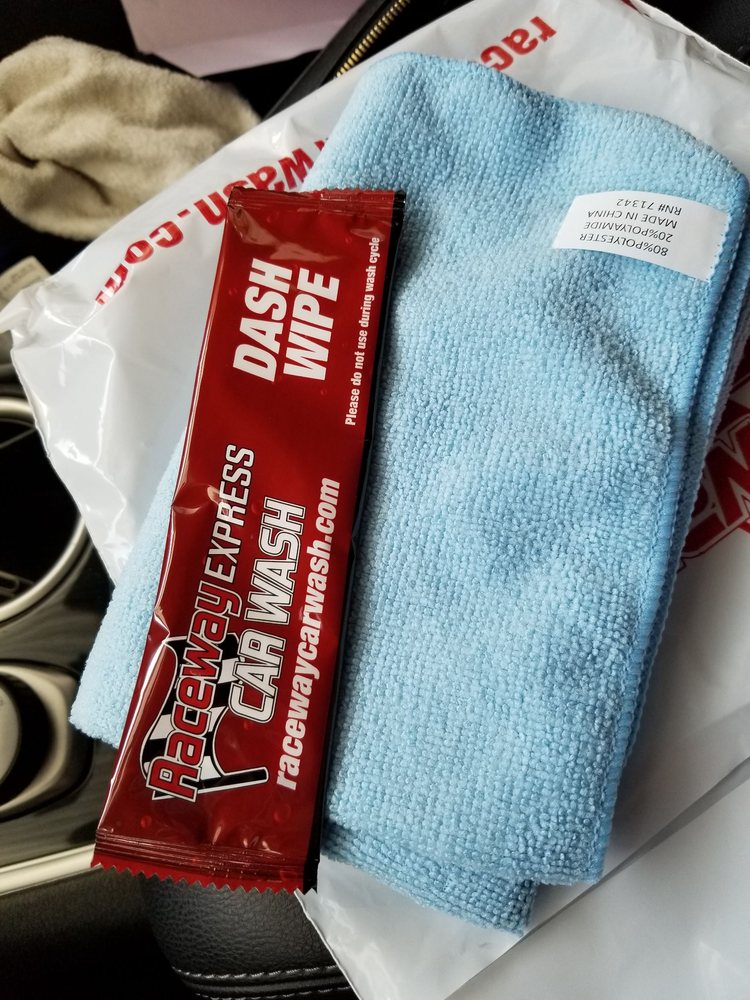 I was amazed at the fact that they give you everything you need to have a great carwash a packet with window towelettes interior wippey and free towels to dry your car. So happy I'm going to cancel my monthly membership with ride and shine and go to Raceway. Thanks for the great service.