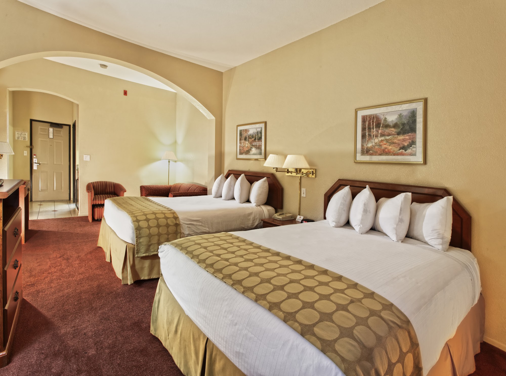 Ramada by Wyndham Fresno Northwest is a budget-friendly hotel that offers a decent stay with good value for the price. Guests find the rooms to be clean and well-maintained, with comfortable beds, new mattresses, and quiet surroundings, ensuring a good night's sleep. The rooms are equipped with essential amenities such as a mini fridge and microwave, and feature a digital air-conditioning and heating system. The hotel is located in a safe, quiet neighborhood, with convenient access to nearby restaurants like McDonald's and In-N-Out Burger. The staff is generally friendly, helpful, and accommodating, with some guests highlighting specific staff members who went out of their way to assist. Check-in is smooth, and the reception area is welcoming. The hotel also has a small fitness area with a new treadmill for guests wanting to exercise during their stay. A continental breakfast is available, satisfying guests looking for a quick meal. However, there are some drawbacks. The hotel is older and somewhat dated, with a small pool and limited amenities. Wi-Fi connectivity can be weak and spotty, and the business center has a non-functional printer, which can be inconvenient for guests needing to print. Laundry facilities are limited, with only one operational washing machine/dryer. Room cleaning is only done upon request, and guests must vacate their rooms during cleaning, which can be inconvenient. Key cards tend to deactivate frequently, requiring multiple reissues, and power surges have caused brief outages in some rooms. Overall, Ramada Fresno Northwest provides an adequate, safe, and quiet environment for a short stay, especially for travelers seeking affordable accommodation with basic comforts.