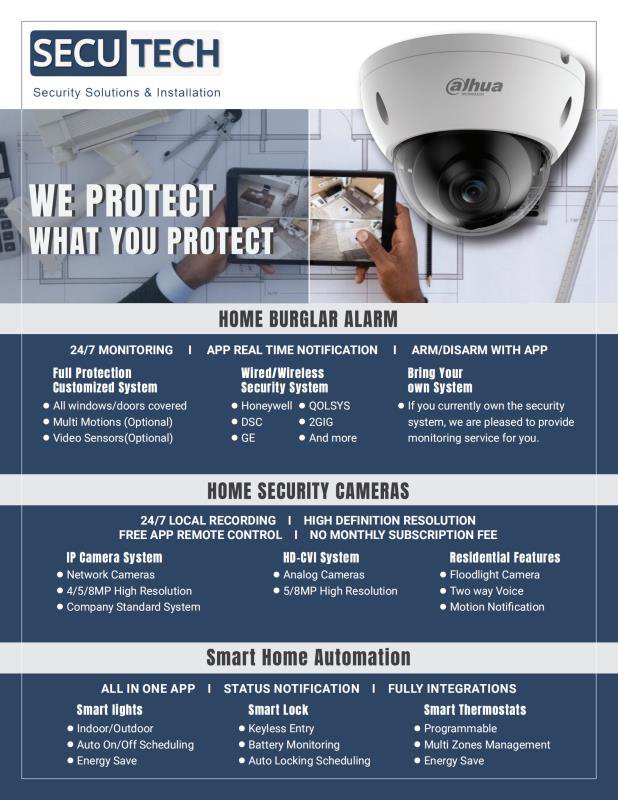 Secutech, thank you Jia for the amazing customer service and immediate responses to my inquiry. It’s been a year since you guys installed my alarm system, and you never failed to offer me a wonderful services and maintenance.Secutech is highly recommend for Fresno & Clovis folks