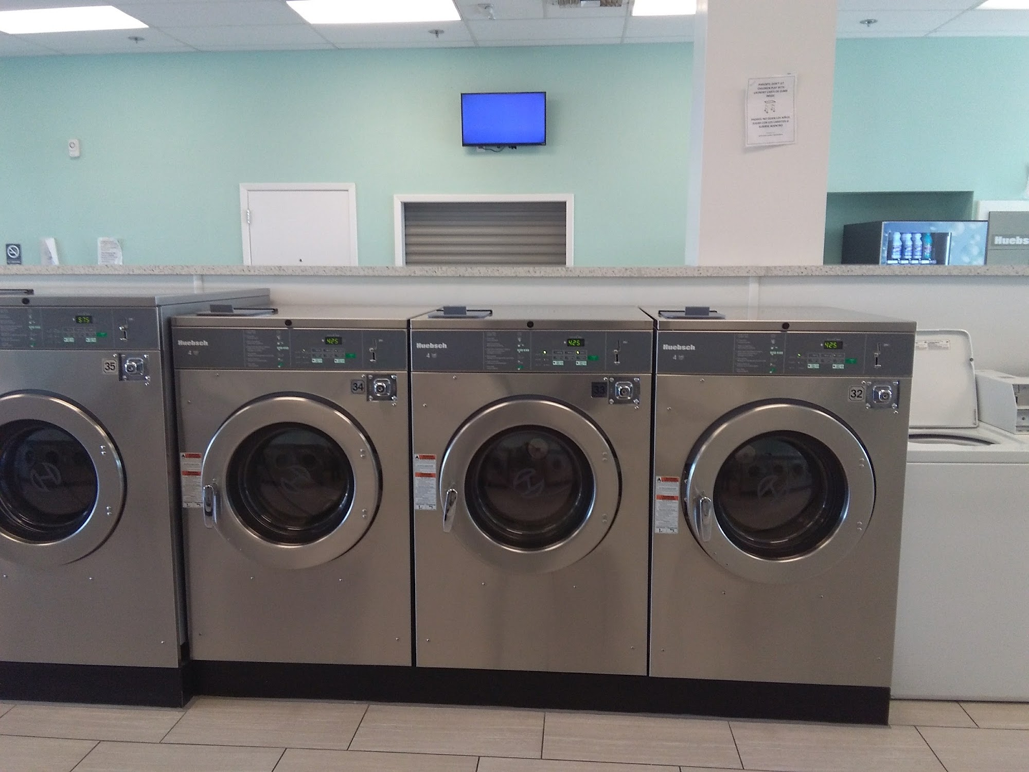 Respect to the hard-working employees who keep the restroom clean and spiffy. I only wish they had a few more small top-loading machines here. Most of their machines work really well. I also like that this place is usually staffed. Great place to do laundry.