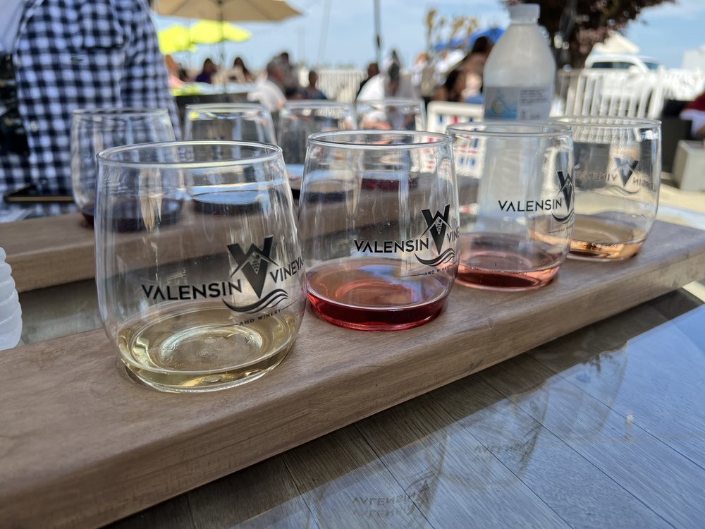Valensin Vineyard & Winery is a charming boutique winery known for its small-lot artisan wines, nestled by a serene private lake and surrounded by beautiful vineyards. The tranquil setting makes it an ideal spot for wine lovers looking to relax and enjoy the local winemaking. Visitors can savor delicious wines while taking in stunning lake views, often complemented by live music events throughout the year. The winery hosts a calendar of events, ensuring there’s always something happening, making it a perfect destination for a fun outing with friends and family. Guests consistently praise the beautiful environment, excellent drinks, and attentive staff, enhancing the overall experience. Many enjoy sipping wine on the patio or watching the waterfront, while others partake in activities like paddleboarding. The winery's wine slushies and various tastings, including sparkling options, are particularly popular. The welcoming staff create a friendly atmosphere that makes every visit enjoyable. Whether for a relaxing afternoon or an exciting event with live music, Valensin Vineyard & Winery offers a delightful escape for all wine enthusiasts.