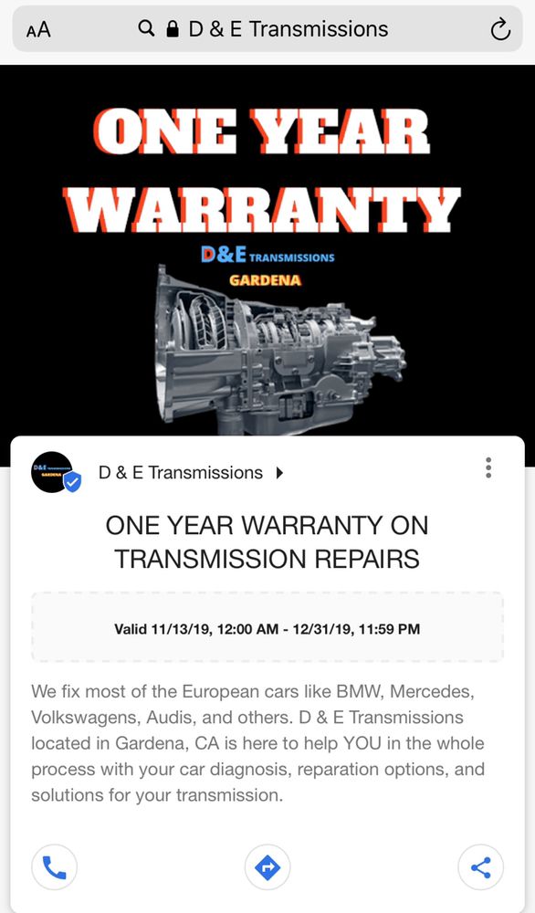 D & E Transmissions is a highly recommended transmission garage known for its outstanding work and excellent service. With a one-year warranty, they are praised for their quick and budget-friendly repairs. Customers report a reliable and trustworthy experience, with clear communication and a focus on solving issues. The owner is noted for being honest and attentive, often identifying potential future problems without being pushy. Many customers express satisfaction with their repairs, feeling their vehicles run better than ever after service at this shop.