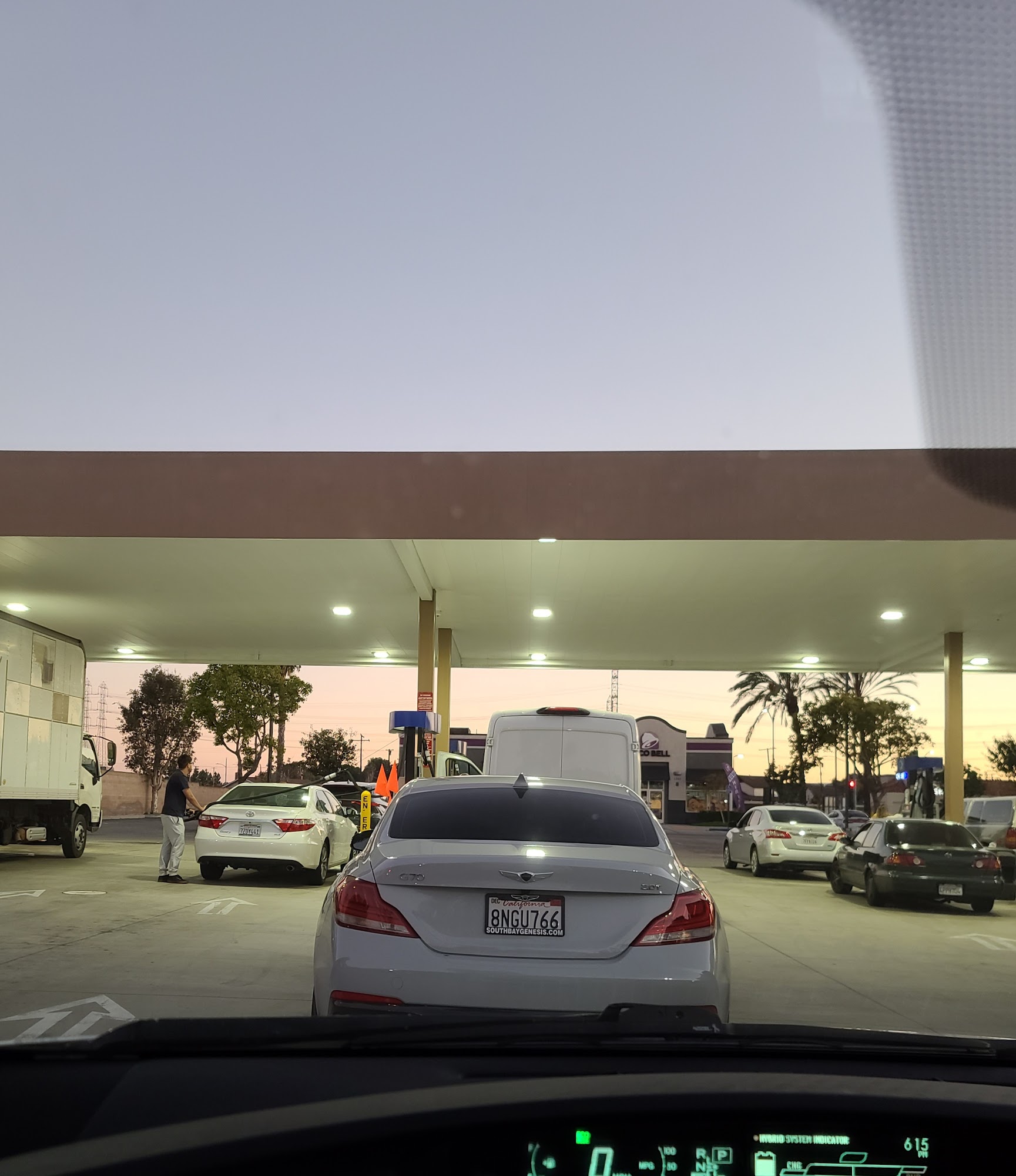 Always a line but not so bad really early in the morning. People have to realize that the pumps are long and you can fill up on either side.