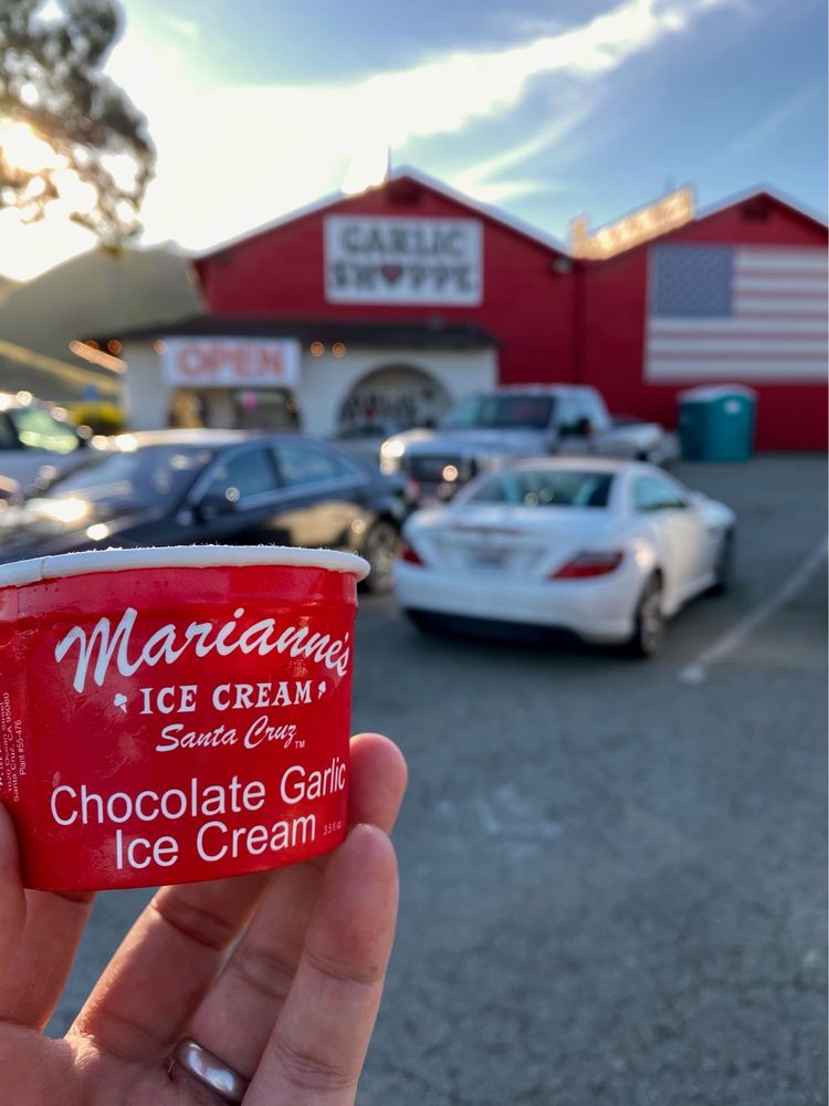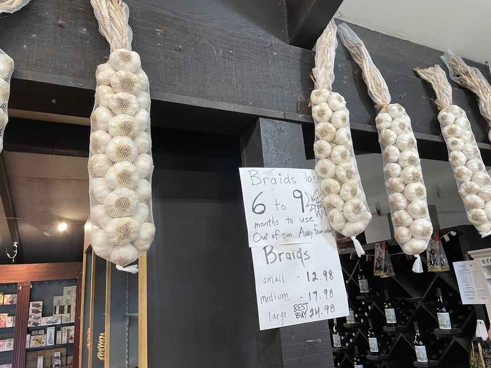The Garlic Shoppe is a unique and beloved destination for garlic enthusiasts in Gilroy, California. Offering a wide array of garlic-infused products, this local establishment has become a mecca for those who appreciate the flavorful culinary wonder that is garlic. The shop's new location, just a quarter-mile north of the Rapazzini winery, provides a convenient setting for wine tasting and garlic shopping. Customers can explore the extensive selection of Gilroy garlic, available both loose and in long-lasting braids harvested in September. The Garlic Shoppe also offers its own brand of Garlic Dude Dust Seasonings, as well as a variety of olives, garlic olive oil, and dehydrated garlic products from the renowned Christopher Ranch. In addition to their own creations, the Garlic Shoppe stocks an impressive array of hot sauces, seasonings, and condiments, including the popular Big C*ck Ranch Special Shit Good Shit and Aw Shit offerings from Texas. Customers can also find unique items like garlic presses, roasters, and bakers, as well as a selection of BBQ sauces, salsas, mayos, and aiolis. The shop's friendly staff and welcoming atmosphere make it a favorite among local regulars and visitors alike. Whether you're seeking a fresh garlic supply, a unique culinary gift, or the opportunity to indulge in the legendary garlic ice cream, the Garlic Shoppe is a must-visit destination for any garlic enthusiast.