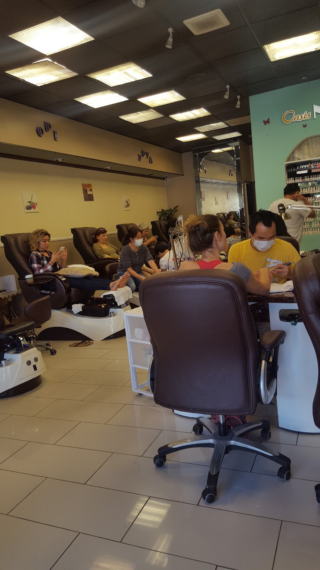 Can’t find any place have more affordable prices than Oasis. I asked for a shiny nail with some gold and the technician tried cat eyes with different shapes on my nail.