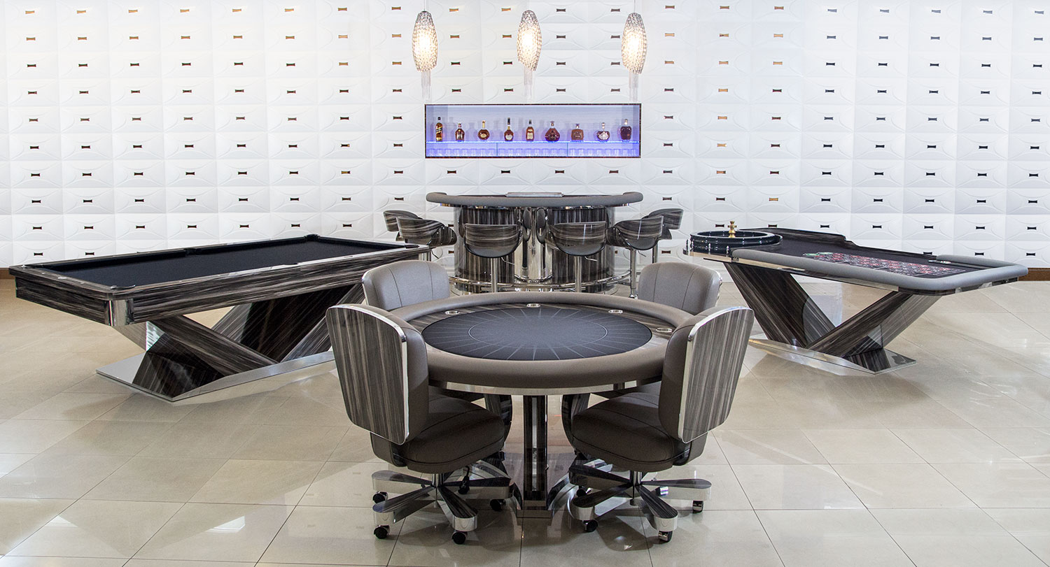 We're a manufacturer of luxury, contemporary American-made gaming furniture - billiards, poker, shuffleboard, craps, roulette, and blackjack tables. Not content to manufacture only tables, we also build custom matching chairs, bars, cue racks, and other game room accessory items - imagine an entire matching game room. Take a look at our website and you'll find modern and contemporary designs that just aren't being made anywhere else in the stodgy and traditional gaming industry. Whether you're in the market for a small but high quality folding table for home games or a full room of matching game room furniture, we can make your dreams come true! Sourced from American goods and built with love in Los Angeles, CA.