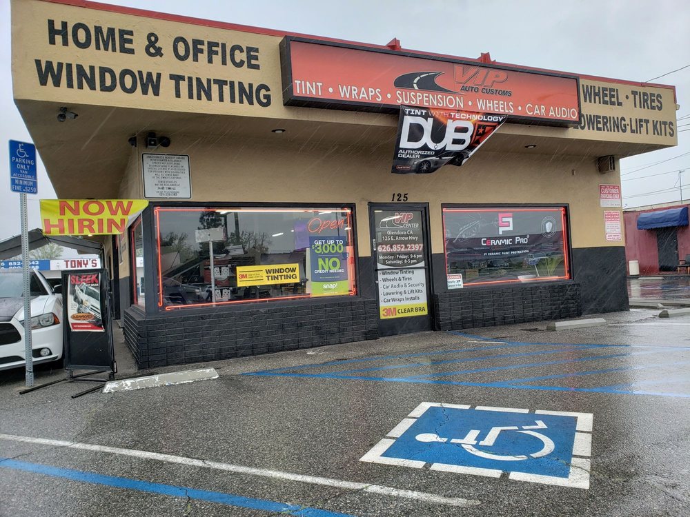 Vip Auto Customs Glendora is known for providing friendly and professional auto tinting services. Customers appreciate their quick service, competitive prices, and the lifetime warranty offered on their work. Many reviews highlight the team's ability to deliver quality results, including tint and logo wraps that remain in pristine condition for years. The staff, including representatives like Robert and Brandon, are praised for their polite and clear communication, making customers feel comfortable and confident throughout the process. The business has a strong reputation for fixing issues promptly, such as replacing scratched tint at no extra cost. Customers often return for their third or multiple visits, indicating high satisfaction with the service quality. Overall, Vip Auto Customs Glendora is recommended for its outstanding service, professional team, and excellent results, making it a trusted choice for auto tinting and wraps in the area.