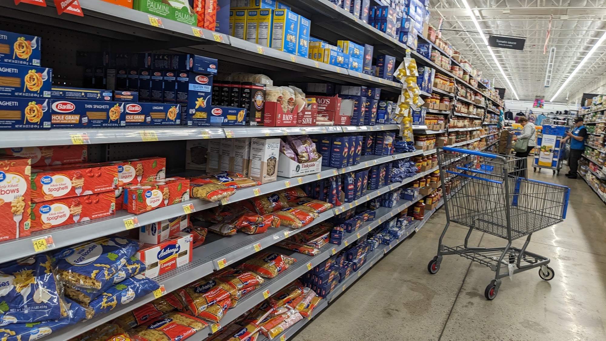 Walmart Supercenter is a large store at a busy intersection with plenty of parking. The store has surely improved over the years, with a much cleaner parking lot and a feeling of safety. It is a big store with lots of options and fully stocked shelves of everything. Friendly and helpful staff provide excellent service. The store is clean, though restocking can make the aisles crowded and tight, making it difficult to get around with a cart. A ton of items are locked up, which is noted as unfortunate. The business offers many convenient services. Customers can order fresh groceries online with no mark-ups and the same low prices as in-store. Walmart+ members get free same-day delivery and can order as often as they want for free. Pickup is free, with Express Pickup available for a low fee. SNAP EBT cards are accepted. Shoppers can choose a pickup time, and trained associates hand-pick the groceries. Using the app, customers can check in, and associates will bring the groceries to the car and load them. The auto center also provides great customer service for needs like fixing a flat tire. Many customers recommend the store and plan to return.
