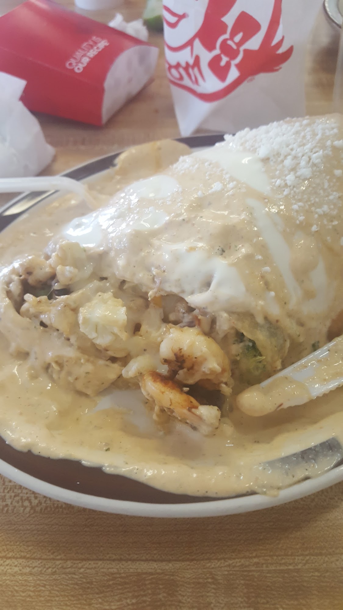 Bland fatty Barbacoa burrito. Truly disappointing. Salsa couldn’t even save this. I hesitate trying the rest of the items. While eating just biting into chunks of fat were disgusting.