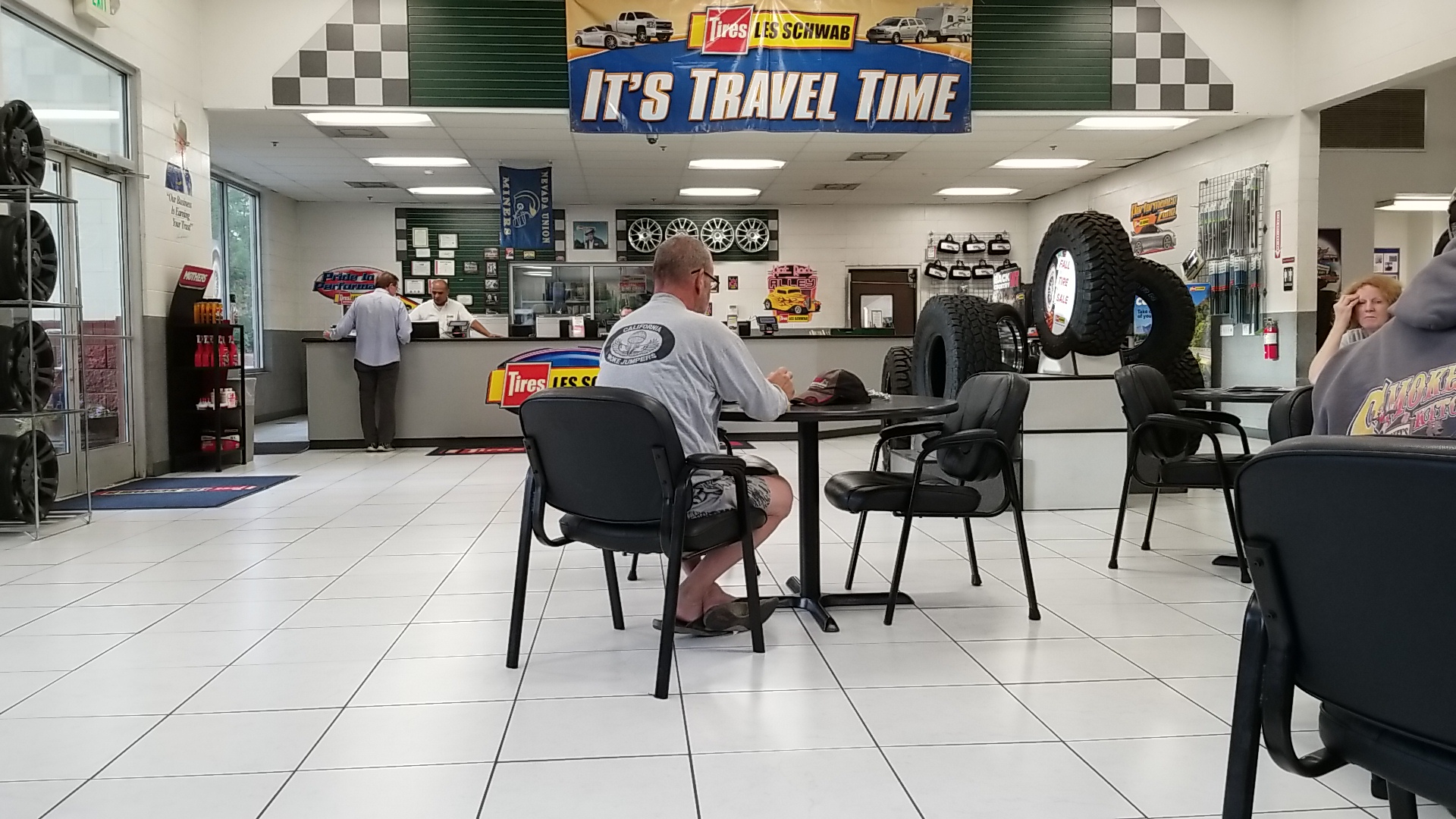 I had a persistently flat tire on my new car. I took it in late in the day and they fixed it up before closing time. I purchased expensive tires there in the past, but these tires came with the new car. They fixed my flat at no charge. Wow. Thank you, Les Schwab GV. I'll buy my next set of tires there.