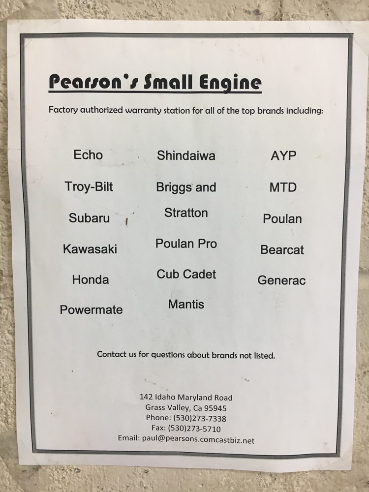 Pearson's Small Engine Repair is a trusted local business with over 20 years of experience. They repair most small engines, including 4-stroke and 2-stroke machines. Their services cover lawn mowers, rider mowers, zero turns, log splitters, water pumps, pressure washers, generators, weed eaters, chain saws, small rotor tillers, blowers, and more. They also sell Echo equipment and Greenworks products. Customers praise their excellent customer service, helpful staff, and quick turnaround times, especially during fall and winter. The staff is known for being patient, kind, and communicative, ensuring customers feel valued. Whether fixing a mower, generator, or other small engine, Pearson's provides reliable and friendly service, often offering same-day repairs. Their professionalism and dedication have earned them a loyal customer base, making them a highly recommended small engine repair company in the area.