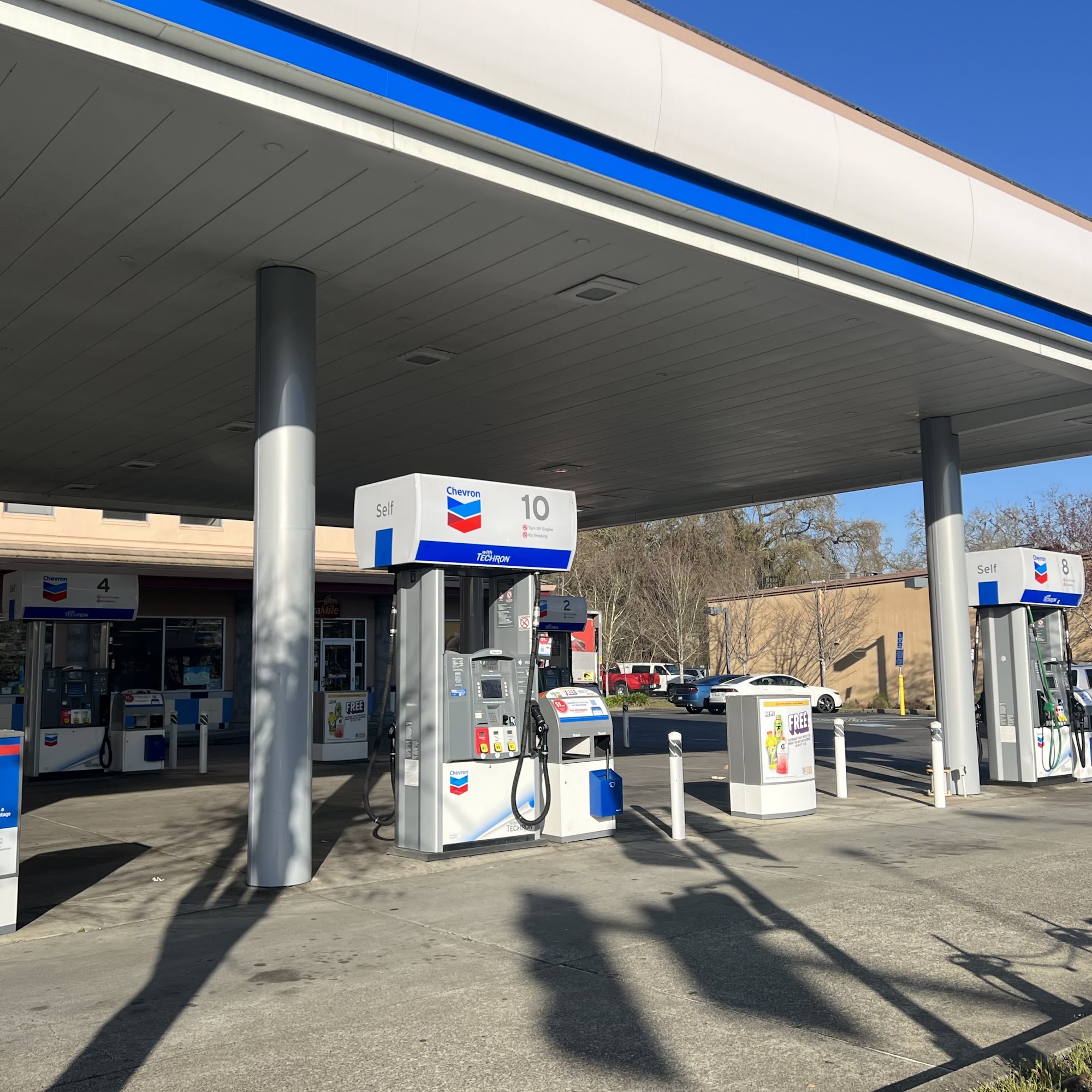 Chevron is a well-maintained and organized location with friendly and helpful staff. The updated store improves the overall experience, and customers can save money by using the iOS app or reward programs. Fuel prices are comparable to nearby stations. The store is clean, but customers need to ask for a key at the register if they want to use the bathroom.