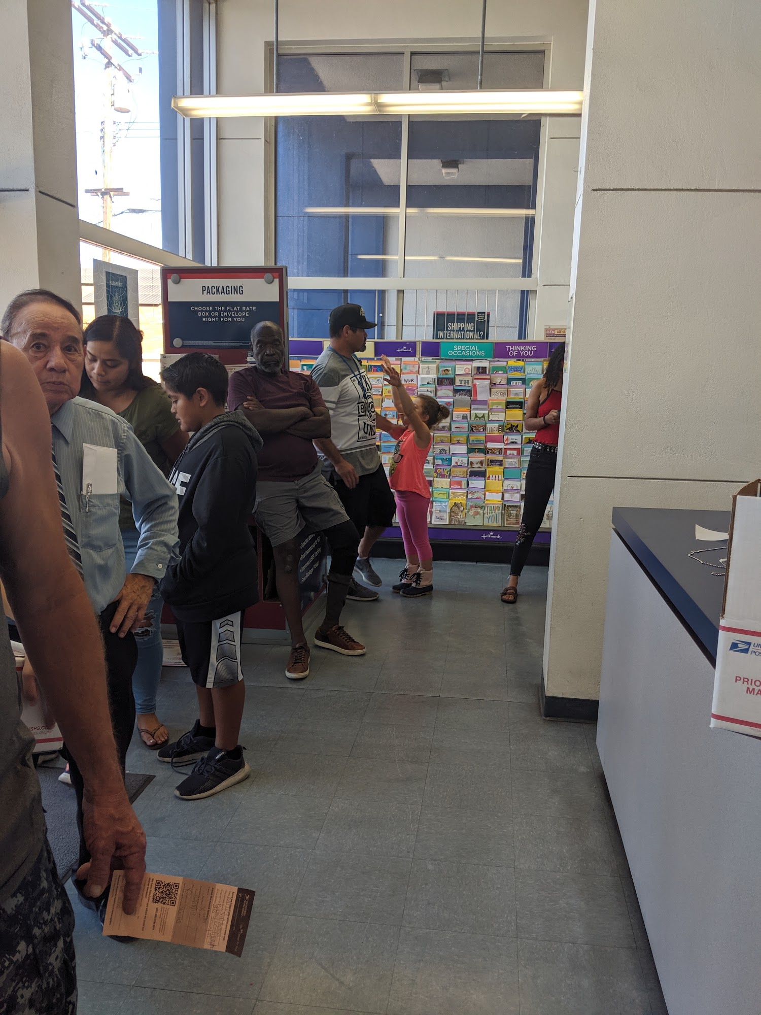 This post office is a prime example of the failed community of hemet. MULTIPLE HOUR LINES from open till close at the parcel pickup window. Why? Because this town is inundated with thievery, drugs and crime. That being said the staff is doing their best - helpful and friendly, hence 2 stars instead of 1.