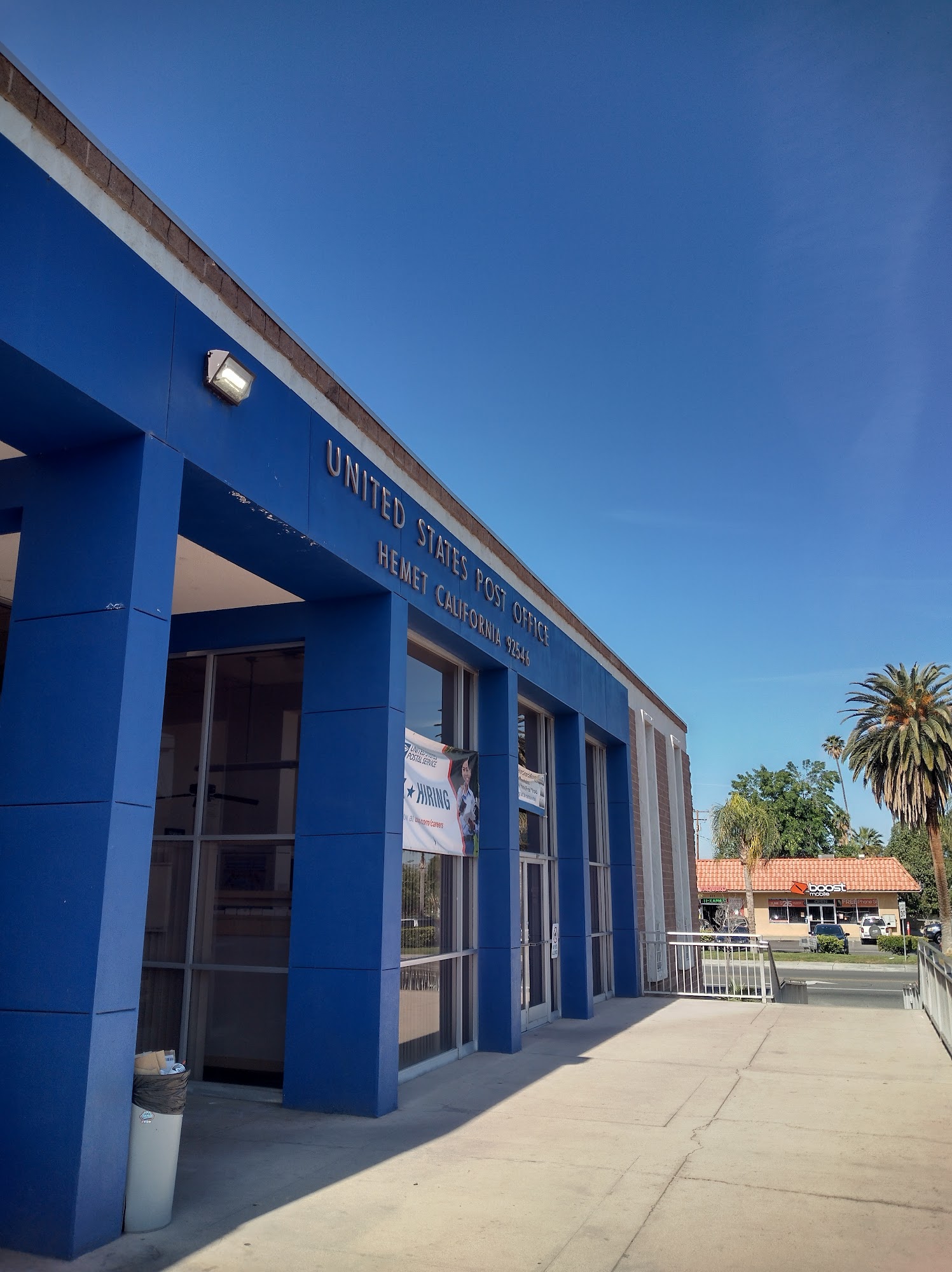 Went to pick up my husband's mail and the line was so long, not worth standing in line. Either they need more workers or extend their hours. And additional post office in Hemet would ideal.