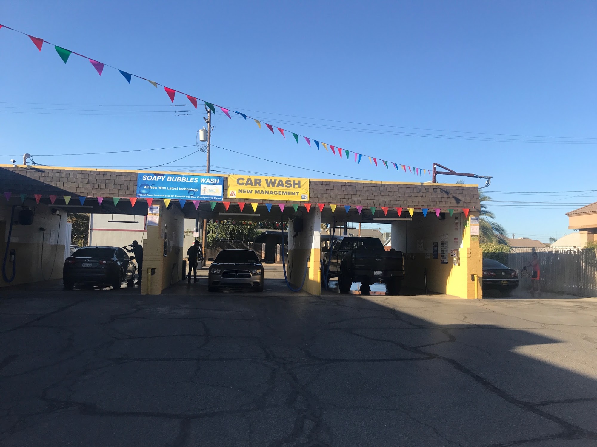 Soapy Bubbles Wash offers a convenient and well-equipped car wash experience. The facility features a modern coin-op system that doesn't require coins, as it includes a bill changer and a credit card swiper at no extra cost. Customers can choose from multiple steps to give their vehicles a thorough cleaning, including options like wax, clear coat, and spot-free rinse. The location is well-lit, making it suitable for nighttime washes, and the soft foam brushes help protect the car's paint, which is especially important for owners of newer vehicles like Teslas. The business has recently upgraded its equipment and cleaned the area, although some customers noted the need for better sweeping around the vacuums to prevent screws from getting into tires. One concern raised was about the lighting, which blinks constantly and can be distracting or feel unsafe, particularly at night. Customer service was appreciated when staff responded and showed willingness to address problems, though initial issues with machines and communication were mentioned. Overall, Soapy Bubbles Wash provides a good car wash experience with modern amenities, though some improvements in safety and cleanliness could enhance customer satisfaction.