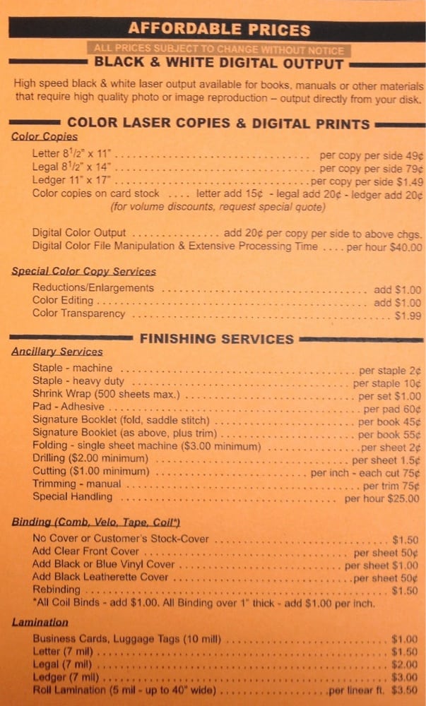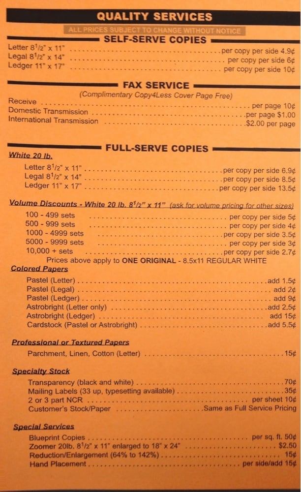 I was just in today, WOW! Very friendly, eager to help. Prices are so much lower than the competitors. I will be coming here for now on. I highly recommend Copy 4 Less!!!!!!!!!!!!