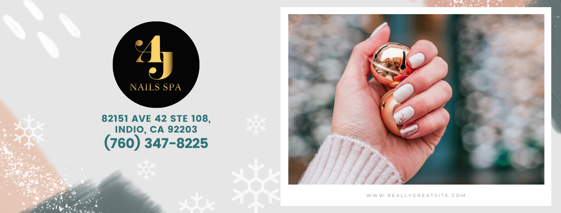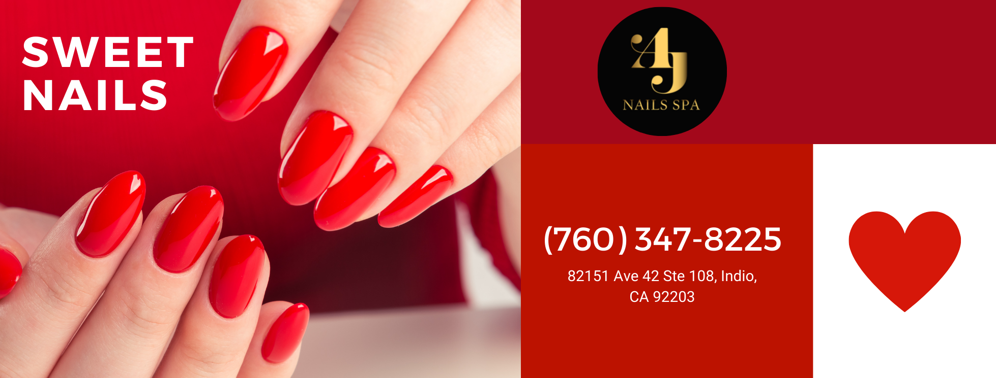 A & J Nails Spa is located in 82-151 Avenue 42 #108 Indio, California 92203 is not only a nail salon that make your nails well done but also a place that heals your tired souls. Enjoy your privilege to be indulged in a spacious and relaxing space. We maintain a rigorous hygiene condition with a daily disinfected space, sterilized equipment, and only use disposable tools. All of our staff obtain certificates in the services we’re offering. With years of experience and constant learning, we’ll make your nails gorgeous and one of a kind. Feel free to unleash your creativity with our wide range of polishes, hundreds of dip powder colors, and a variety of pattern palettes! We only use the products from trusted brands!
