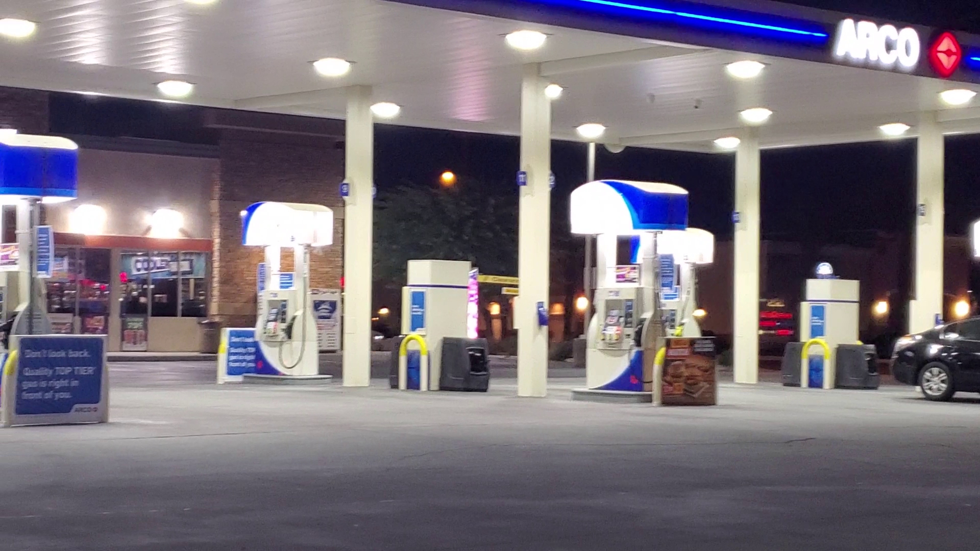 it was early on a Sunday morning, not too many cars . Clean restrooms.