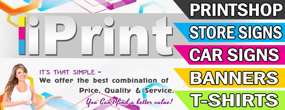 iPrint is a family owned and operated Print, Sign and Shirt shop established in 2012. We offer apparel perzonalization, screen printing, embroidery and direct to film prints. Large format printing for banners, decals, car wraps, dye cut decals and more! We carry a large selection of signs, Yard signs, real estate signs, A-Frame signs, advertising flags, backdrops and tents. We are a one stop shop for all your business needs.