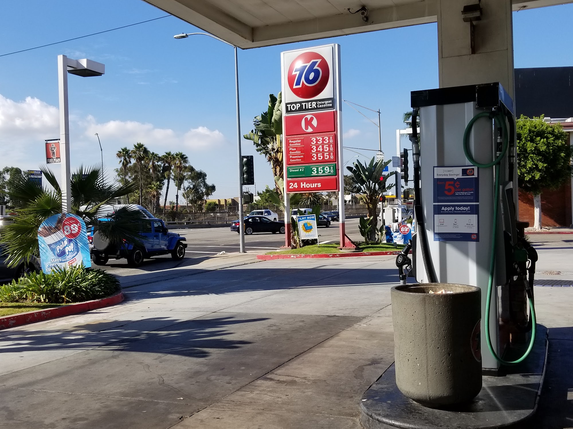 76 is a well-located gas station and convenience store that offers a variety of refreshments, hot food, and friendly service. The store is clean and has a great selection of items, including coffee, chips, candy, and energy drinks. The staff is always welcoming, and the fried chicken is particularly delicious, with a crispy and flavorful taste. While the location can get busy at certain times, the cars move quickly, and the owner and manager are helpful and friendly. The gas prices are also reasonable, especially compared to other stations in the area. Overall, 76 is a reliable and convenient option for travelers and locals alike.