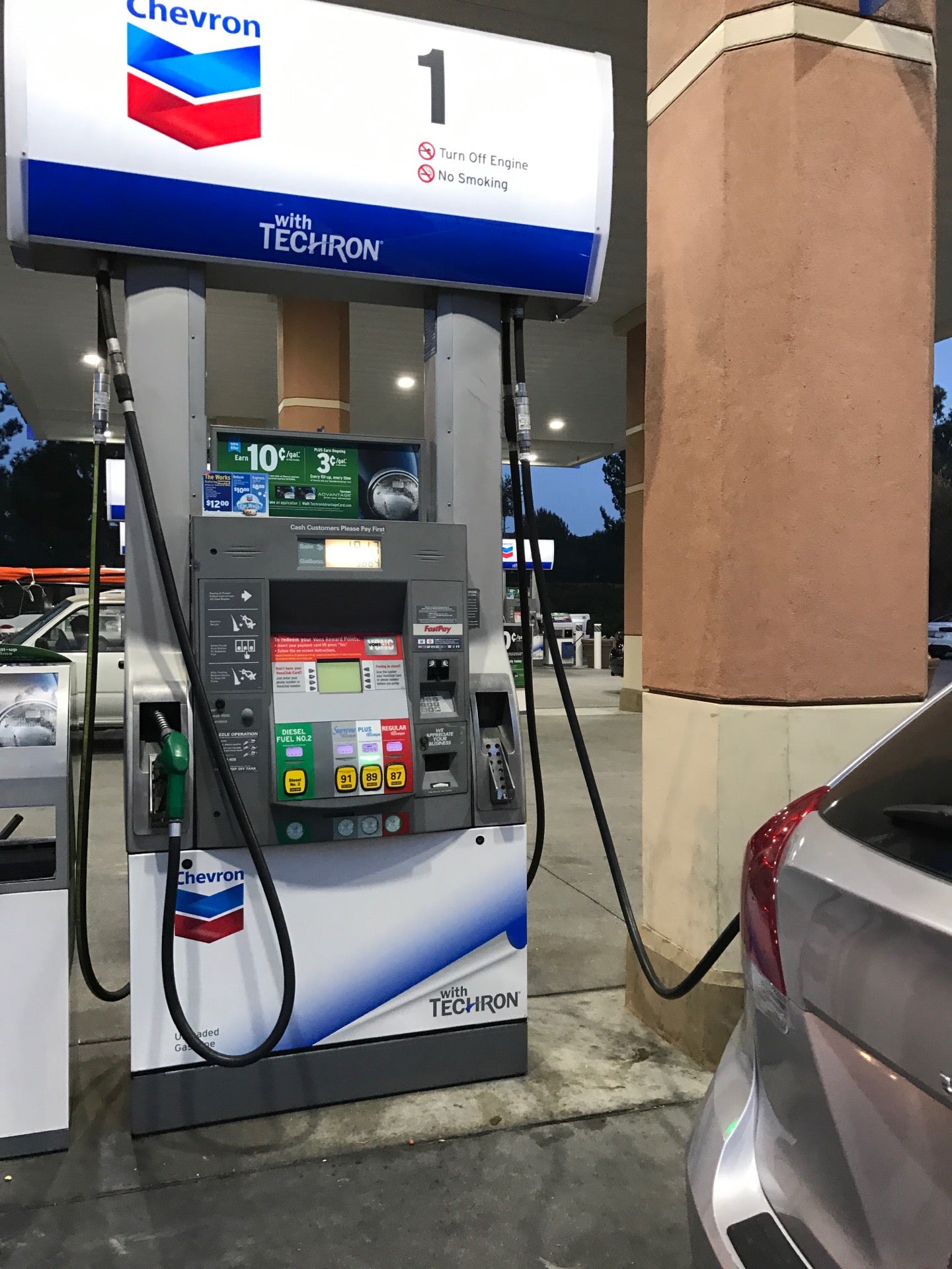 Chevron is a convenient gas station known for its quick service and helpful staff. Located next to a Carl's Jr, it offers an easy stop for both fuel and food. Customers appreciate the well-carbonated sodas, making for a refreshing drink option. The team working at the register is friendly and efficient, ensuring that customers do not have to wait long in line. This location also features a laser car wash that leaves vehicles looking clean and crisp, making it a popular choice for car care. While gas service is straightforward and generally not overcrowded, customers have noted a slight wait at times. The store also carries a variety of tobacco products, catering to those in need. Overall, Chevron is a reliable spot for fuel, food, and car cleaning services.