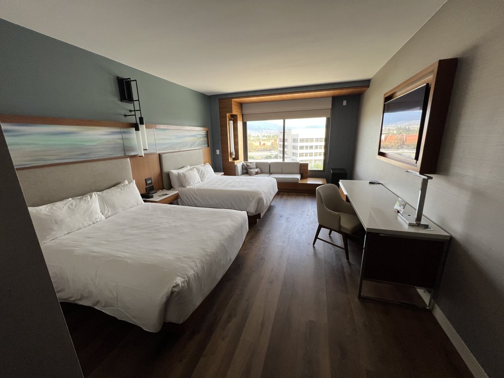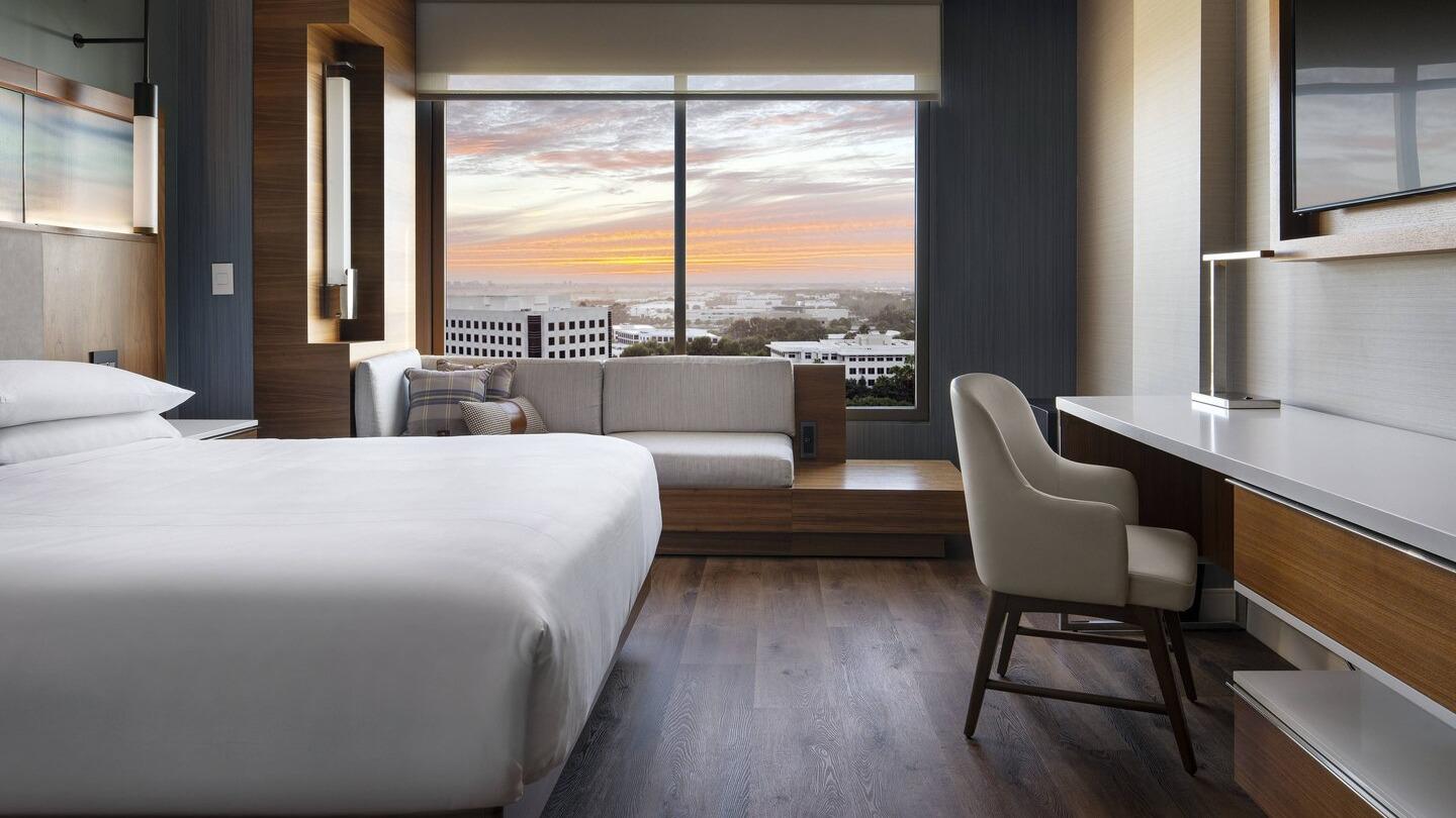 Marriott Irvine Spectrum offers a range of experiences for both business and leisure travelers. Guests frequently praise the friendly and accommodating staff, who go above and beyond to make stays memorable. Many appreciate the thoughtful touches, such as birthday greetings and welcome gifts. The hotel features spacious, clean, and modern rooms, with amenities like an M Club lounge and a rooftop bar called Hive and Honey, which offers stunning views and enjoyable food options. However, some reviews indicate that the hotel may be showing signs of age, with requests for updates to the rooms and facilities. Valet parking and additional fees for services have received some criticism, with guests feeling that costs are increasing without a corresponding rise in quality. While the downstairs restaurant is seen as adequate, it may not meet the expectations of all guests. Despite some concerns about pricing and maintenance, many guests express a strong desire to return due to the overall positive experiences, highlighting the hotel's excellent location near the Spectrum and the high level of service received. Marriott Irvine Spectrum is often considered a standout choice, making it a preferred option for travelers visiting the area.