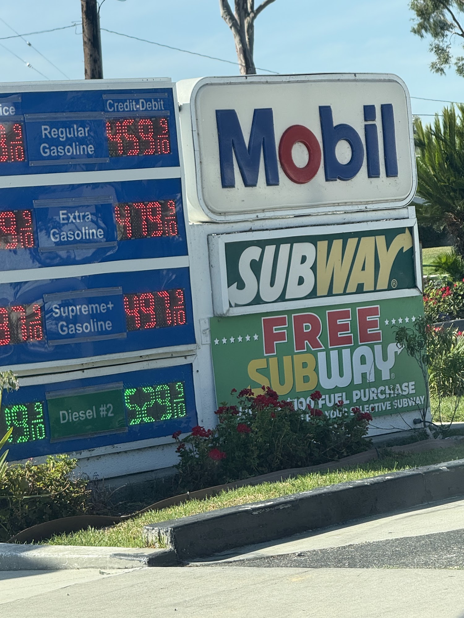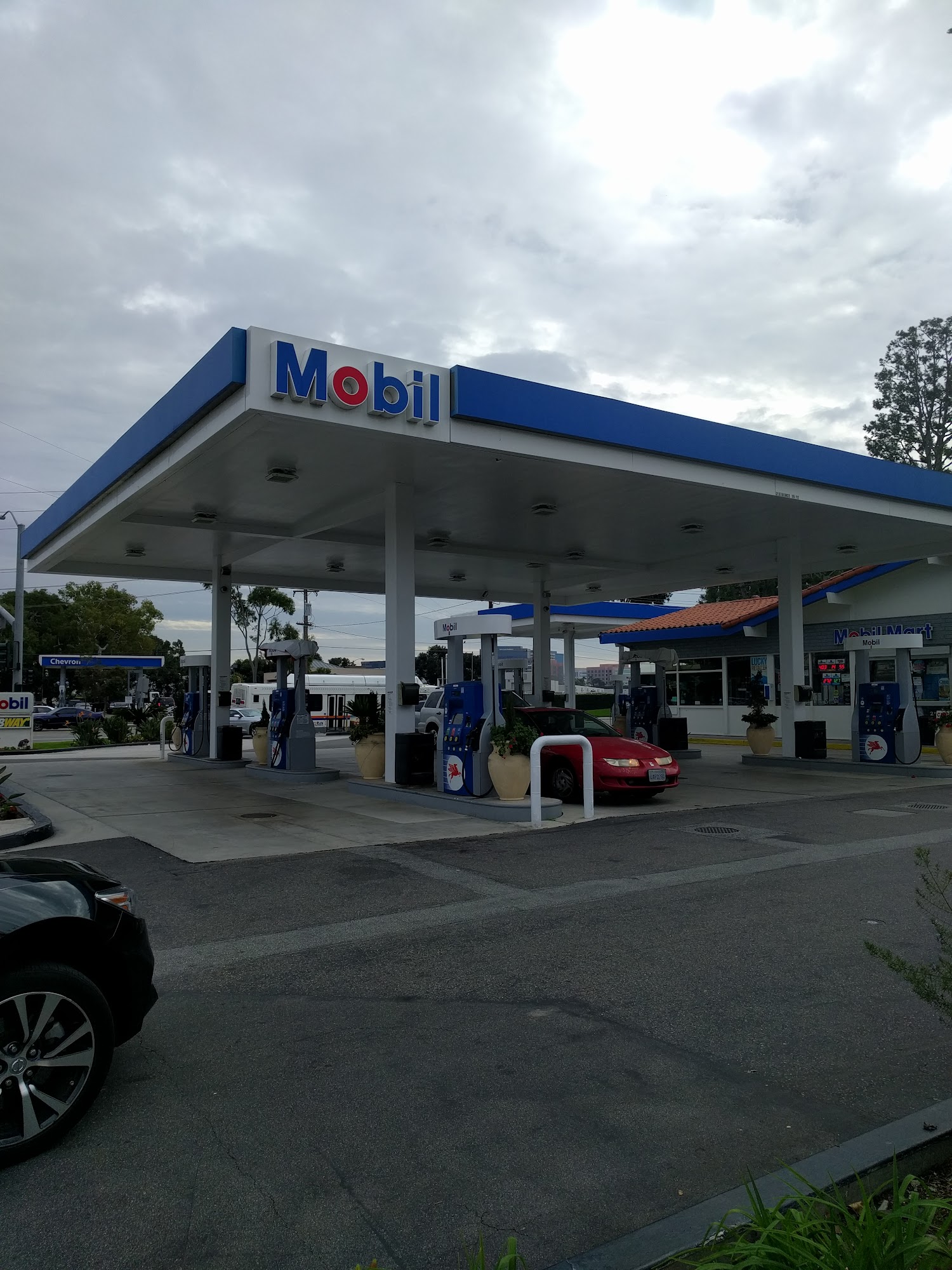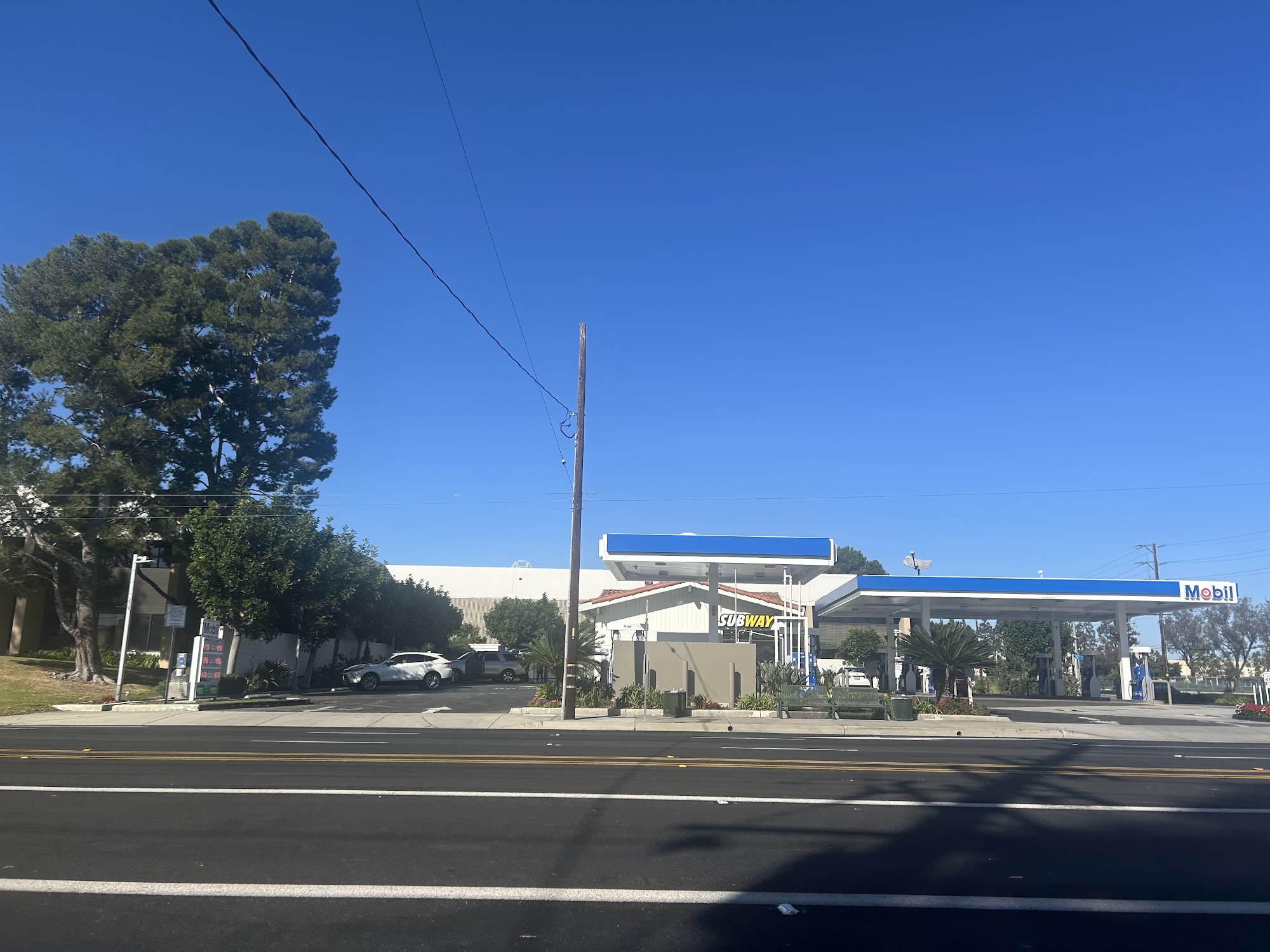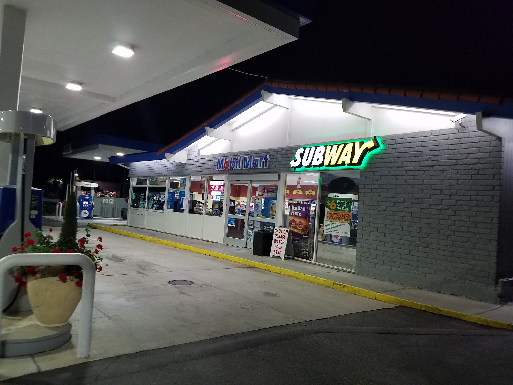 Mobil is a good place to fill up, especially before returning a rental car at SNA airport. It is clean and provides fast fills. The location looks safe in the daytime. All workers have a great attitude and provide the best, fantastic customer service, always smiling. The cash register worker was an absolute dose of positivity and joy. While the selection is a bit basic, they offer Subway with very good sandwiches and bread, along with some hard candy. The gas dudes are friendly.