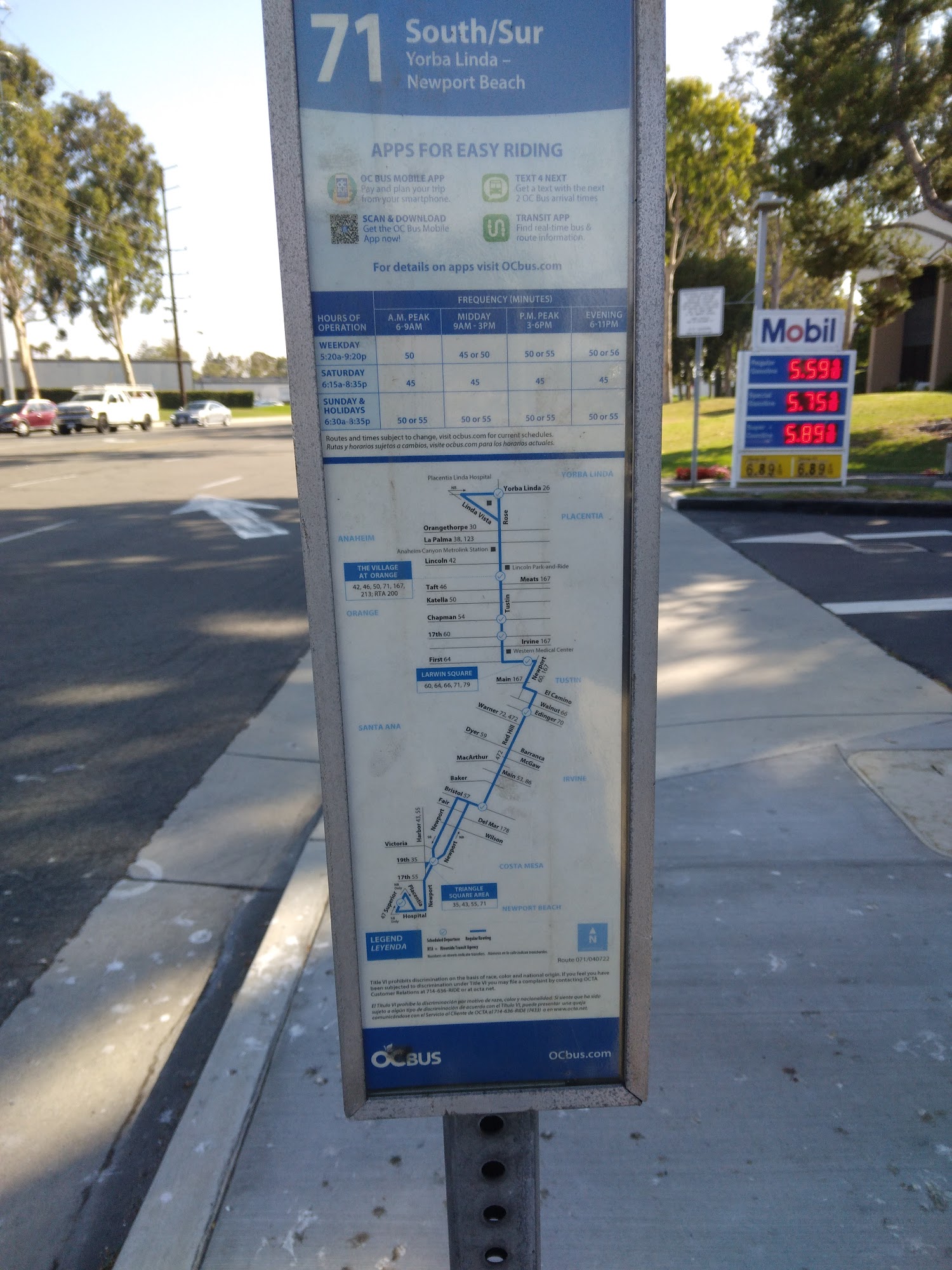 Good place to fill up before returning your rental car at the SNA airport. It looks pretty safe in the daytime so you can sort out your stuff here too.